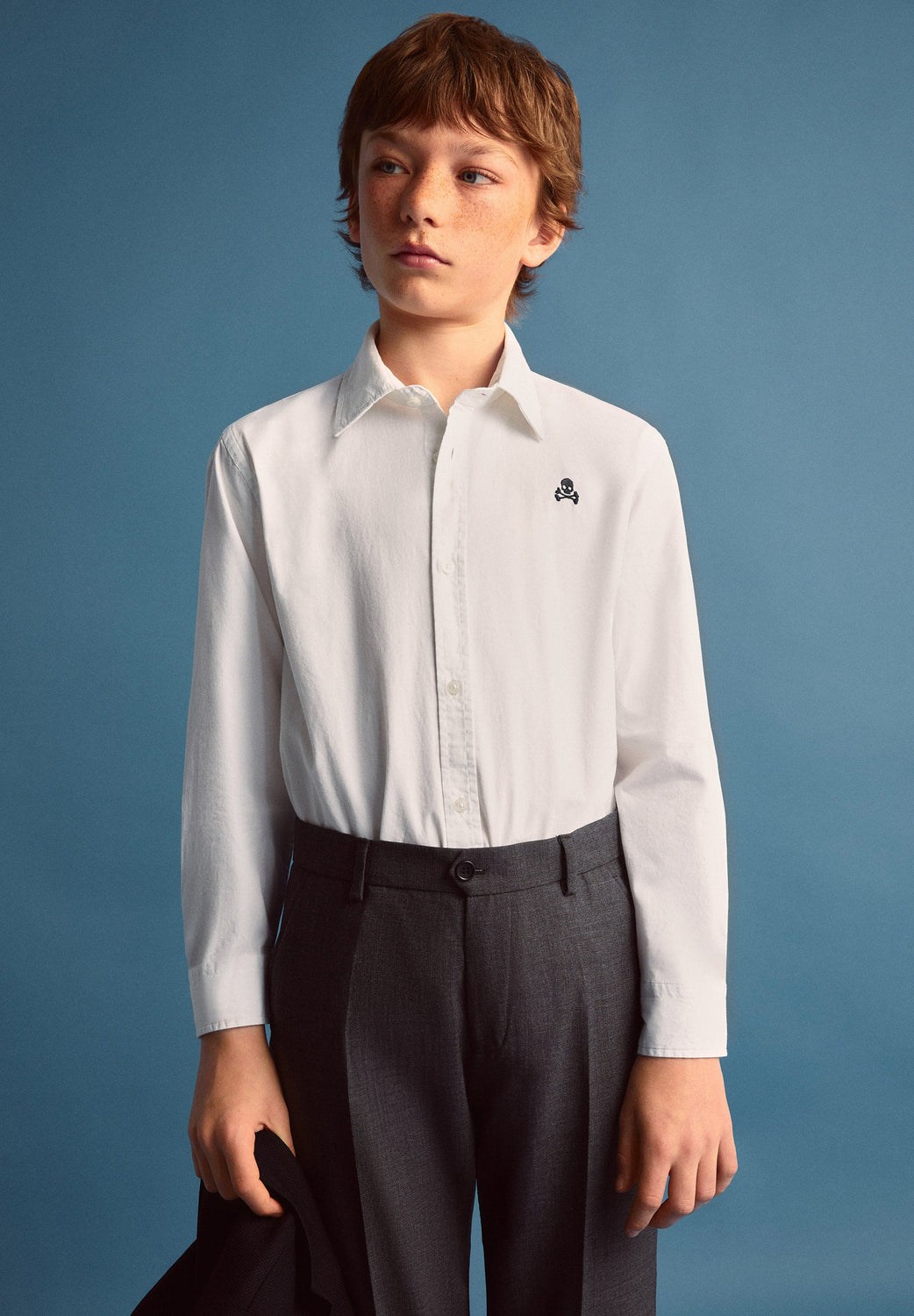 - Corte Regular Fit, cuello button down y cierre con botones.