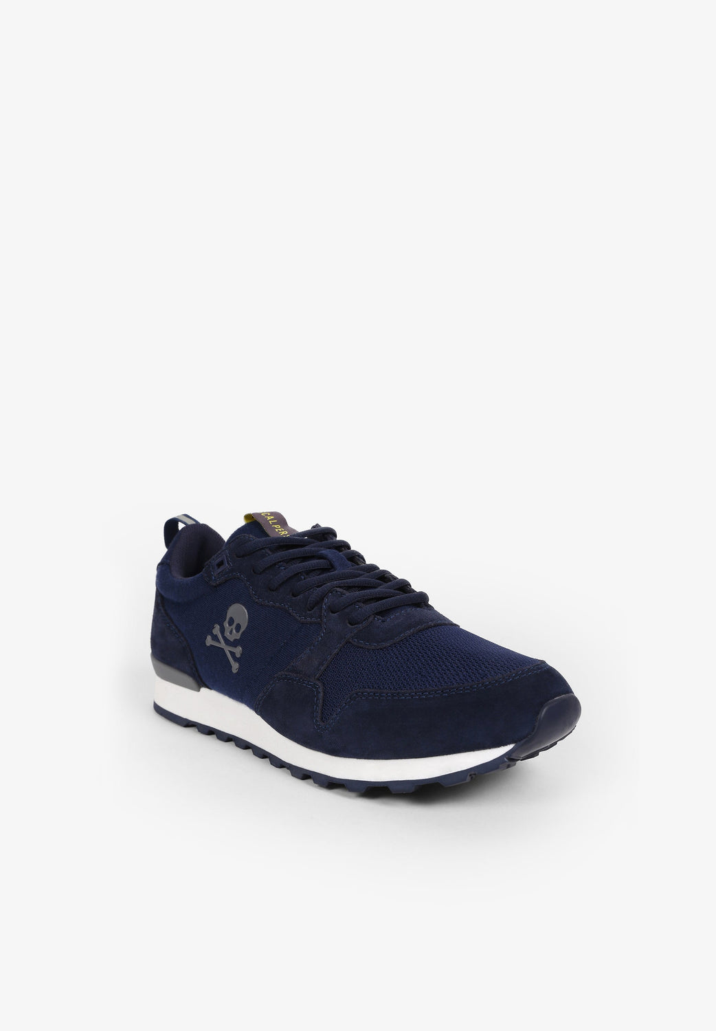Zapatillas confeccionadas en nylon y serraje a contraste. Cierre con cordones a tono. Suela de goma y eva con estabilizador a contraste. Calavera printeada en goma de alta densidad en el lateral.