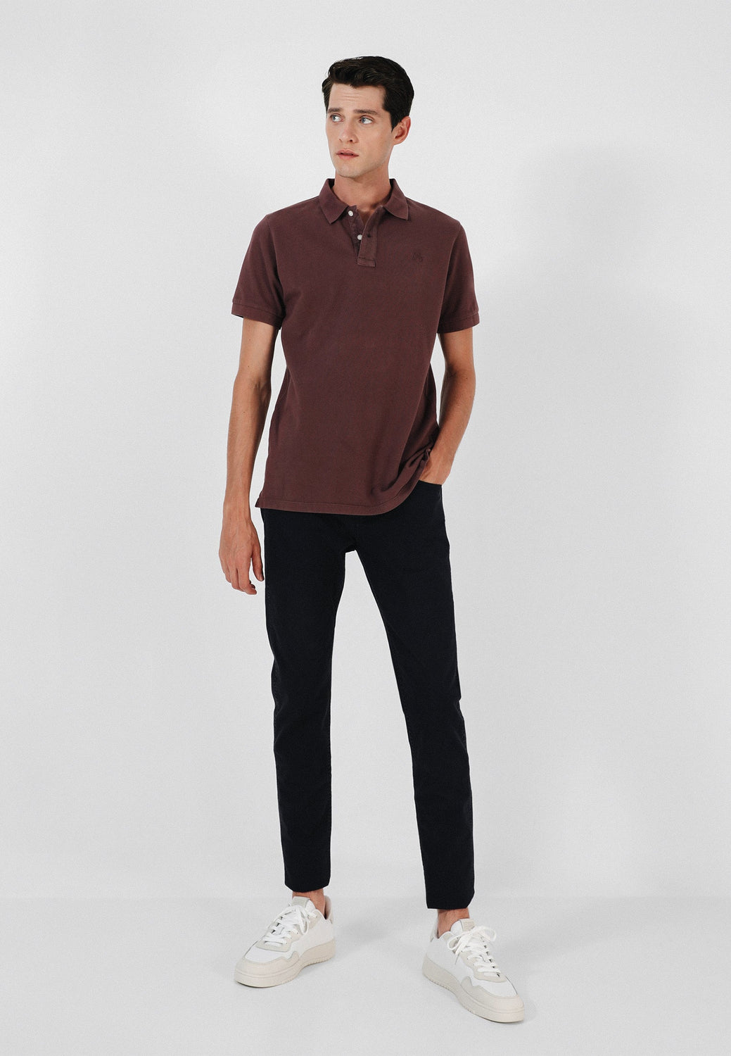 Polo confeccionado en tejido 100% algodón. Corte Regular Fit, cuello clásico y cierre con botones. Manga corta y detalle de calavera a tono.