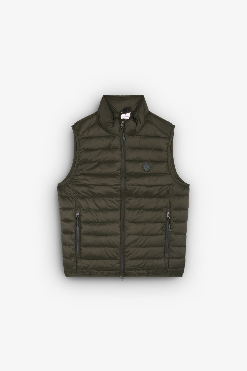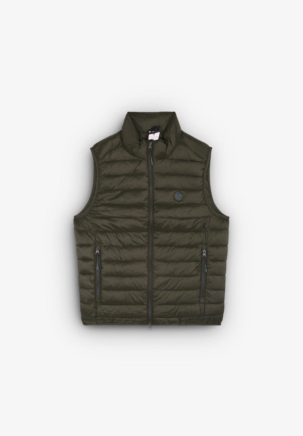 Chaleco acolchado confeccionado en tejido de nailon y poliéster reciclado water repellent.