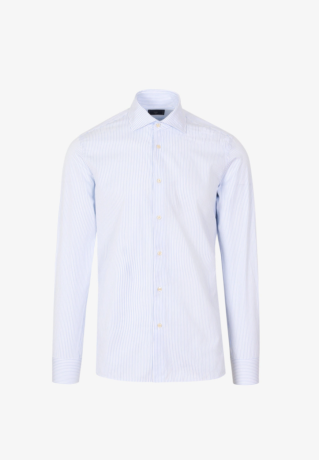 Camisa de vestir confeccionada en tejido 100% algodón. Corte Slim Fit, cuello clásico y cierre con botones. Manga larga terminada en puño con botones.
