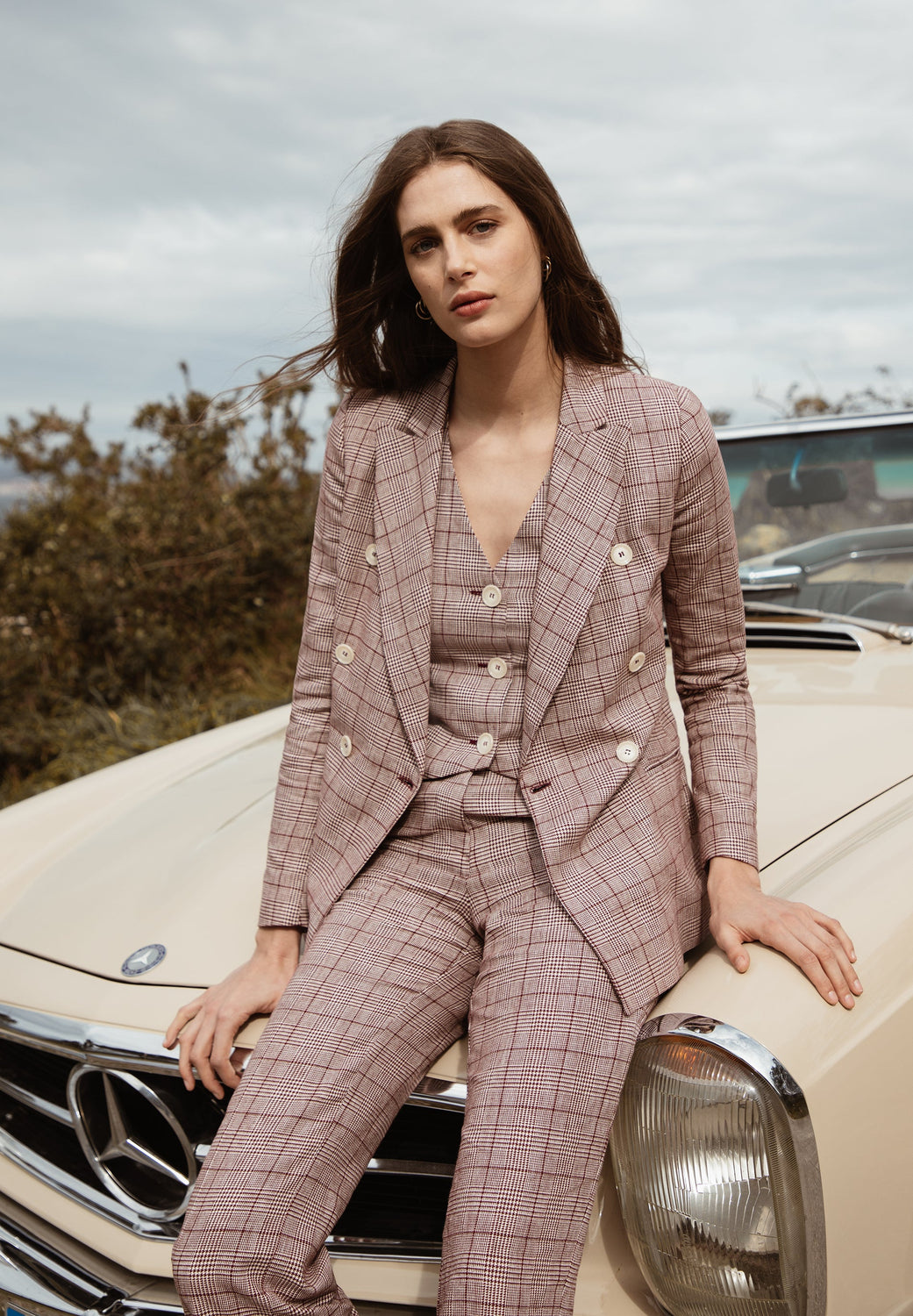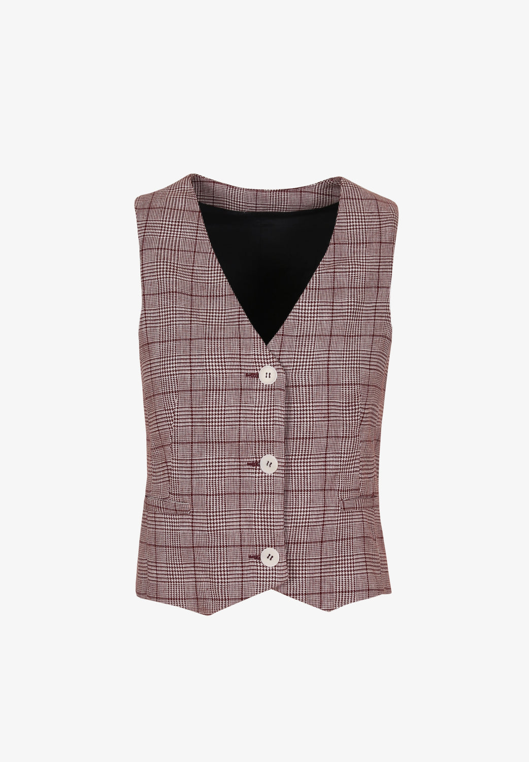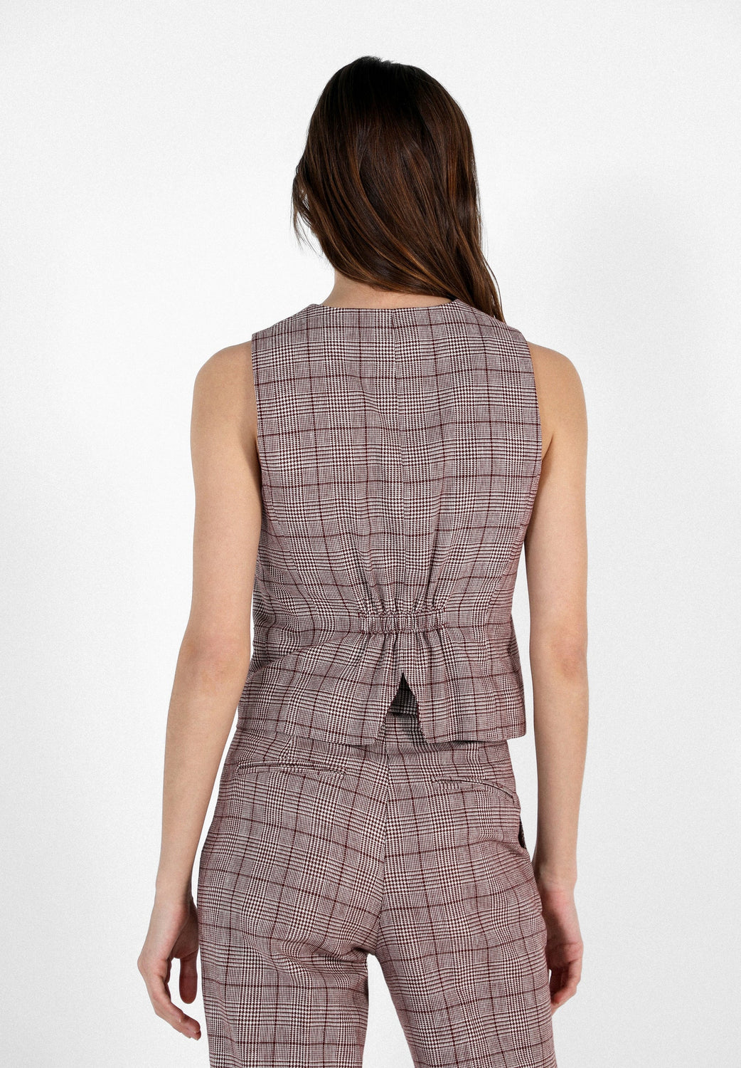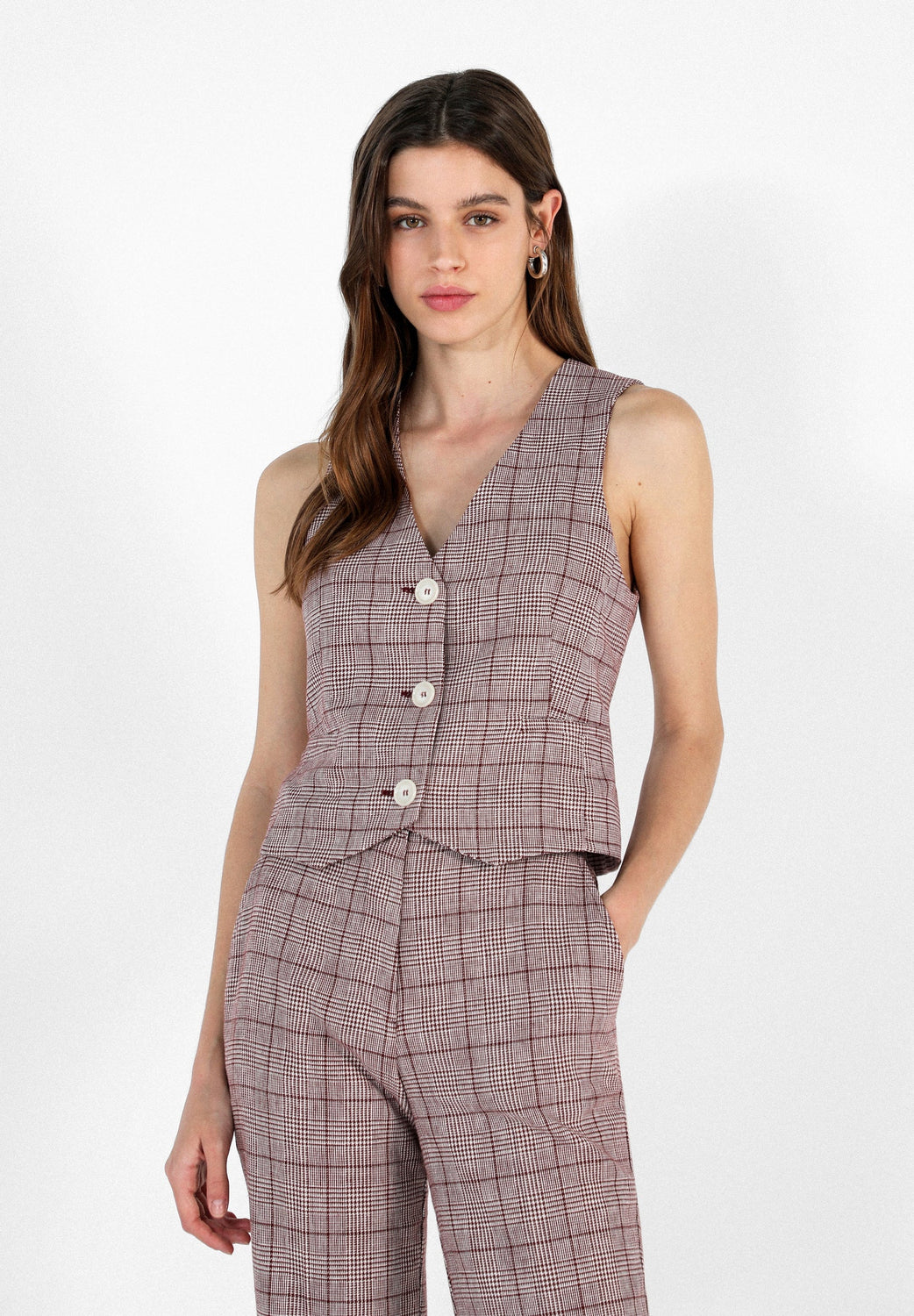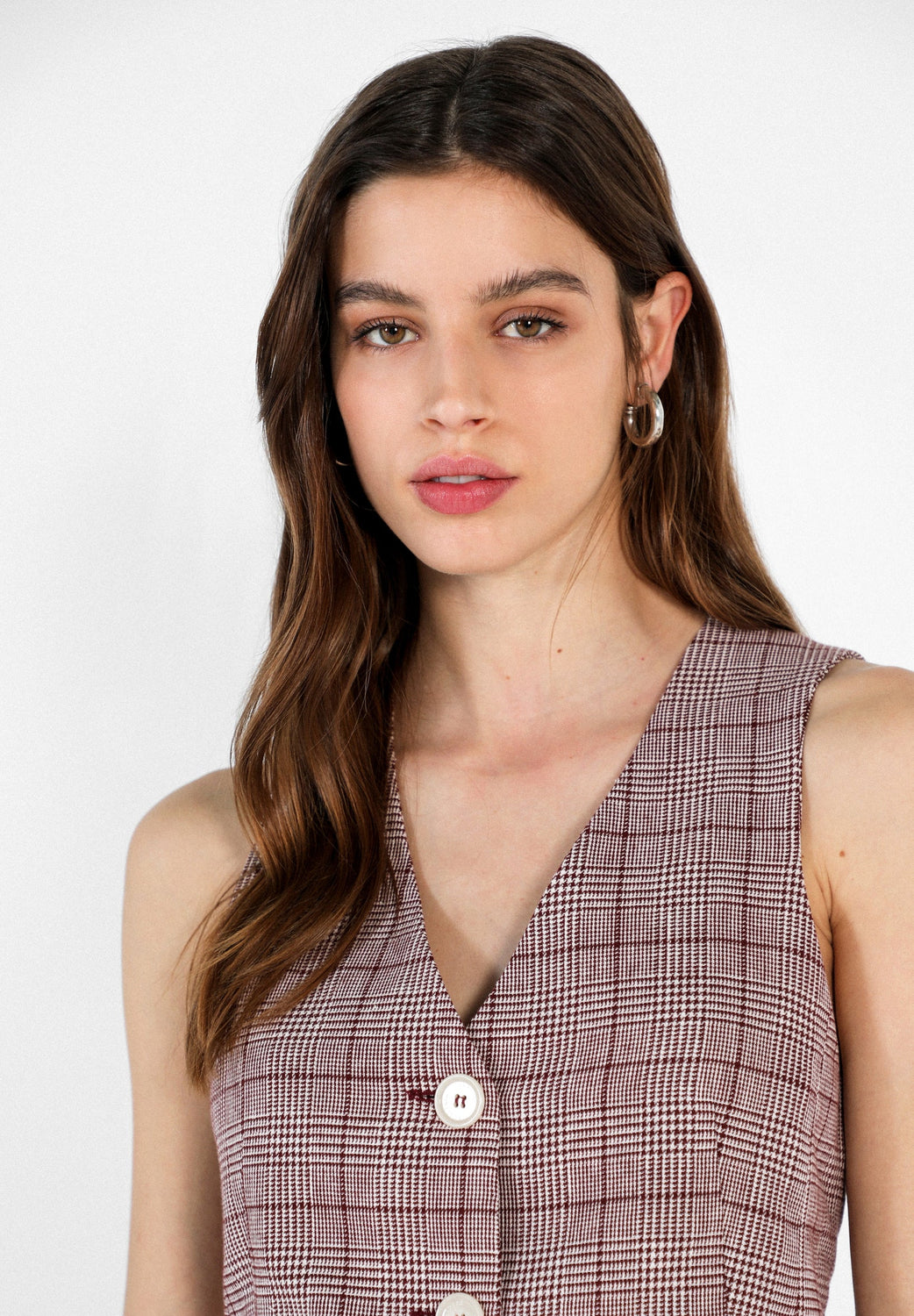 Chaleco con estampado de cuadros confeccionado en algodón y lino. Corte Regular Fit, cuello de pico y cierre con botones. Manga en sisa.