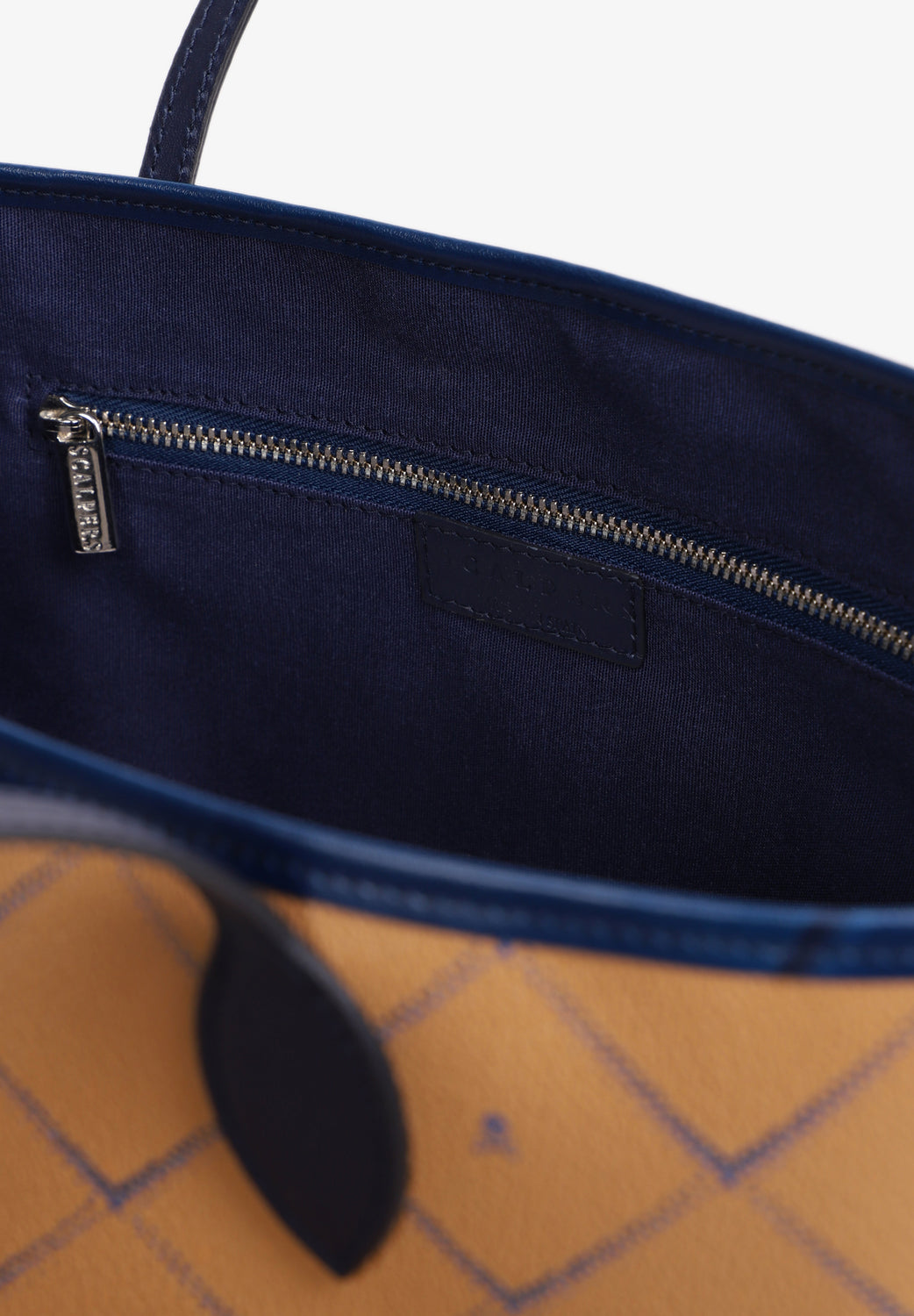 Bolso shopper con estampado de rombo. Asas cortas y bolsillo interior con cremallera. Detalle de tachuela de calavera.