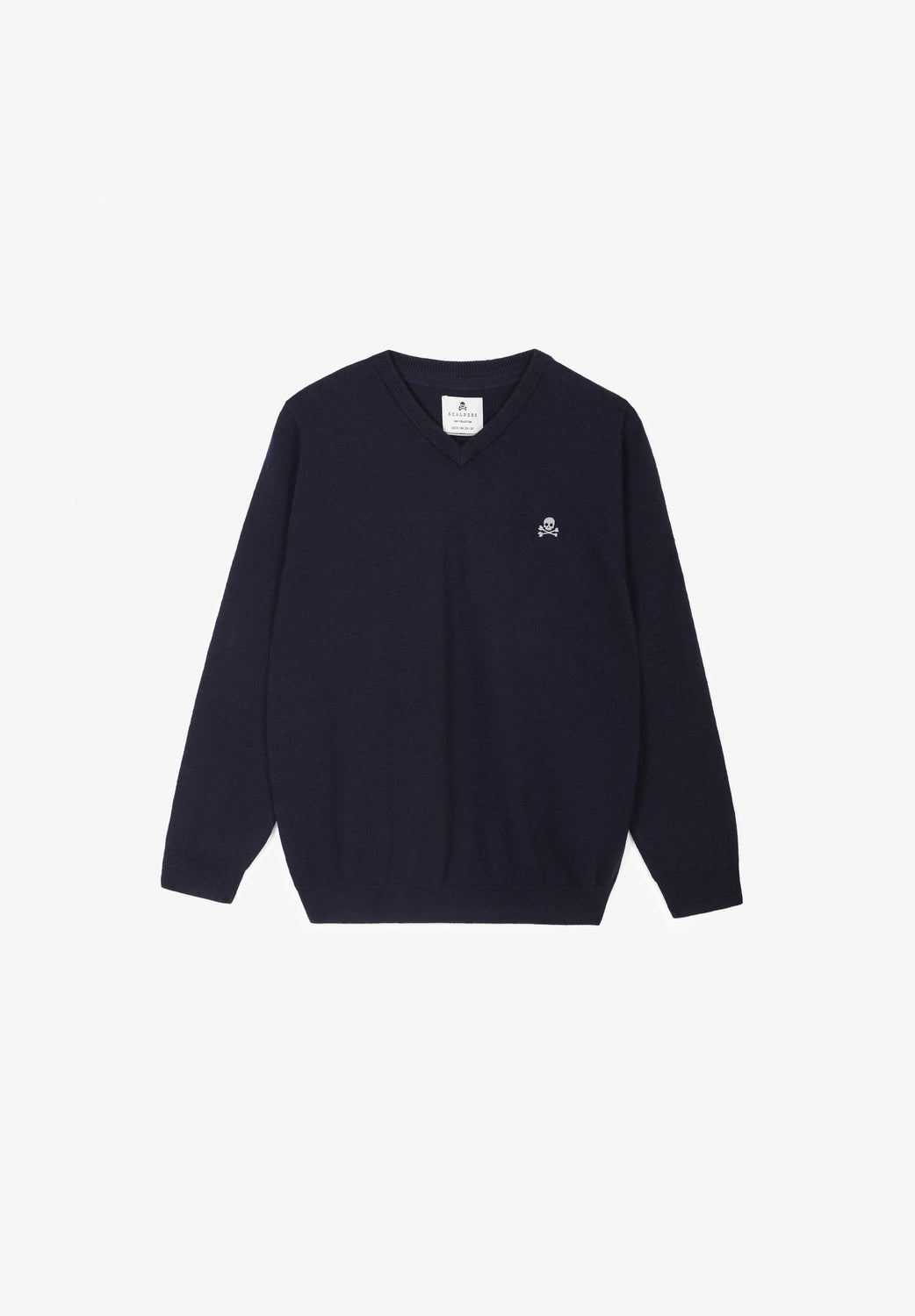 Jersey confeccionado en mezcla de algodón y cashmere. Manga larga. Cuello en pico. Calavera bordada en pecho. Acabados en rib.