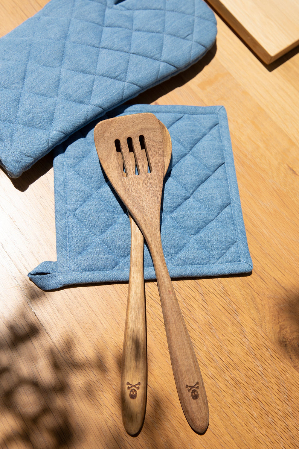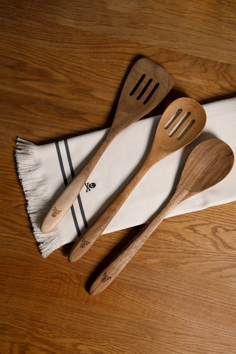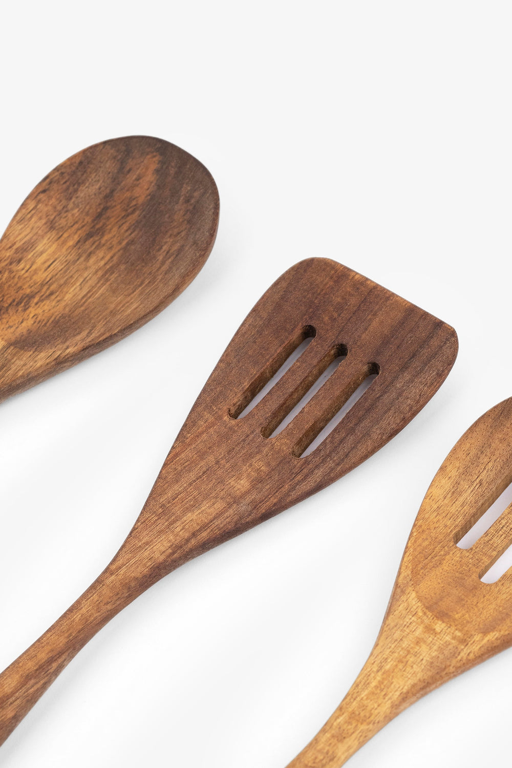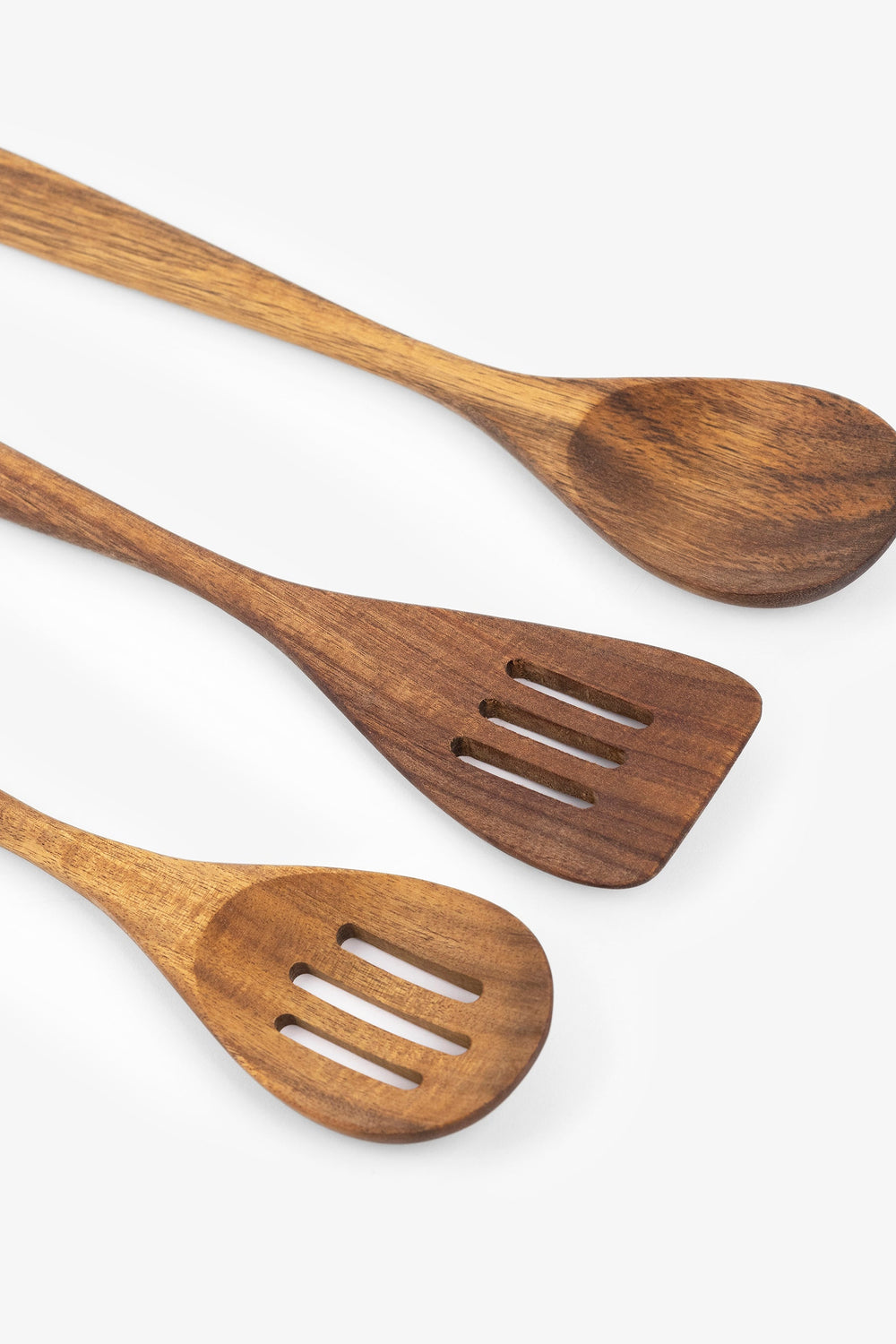 Pack de utensilios de cocina fabricados en madera de acacia.