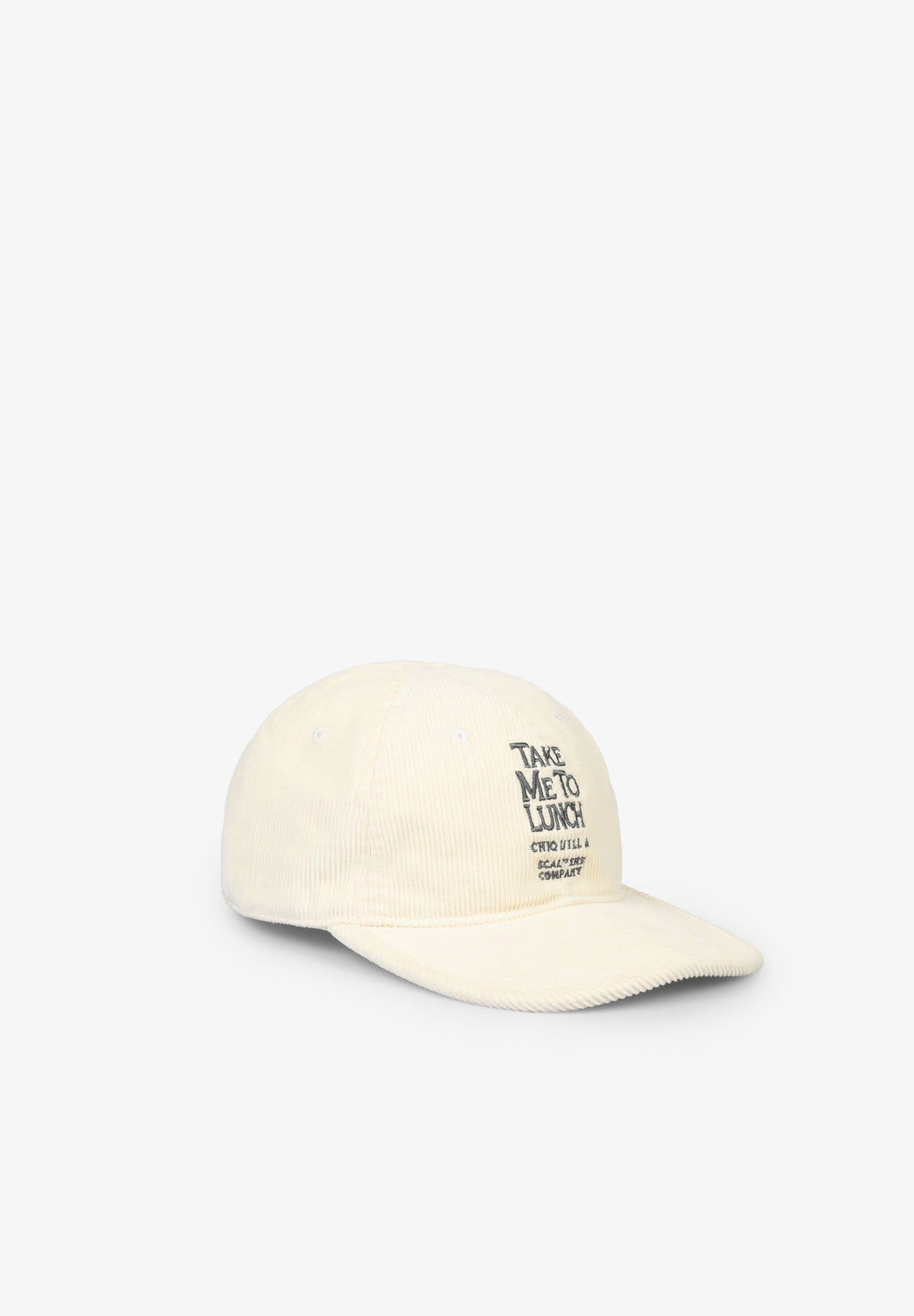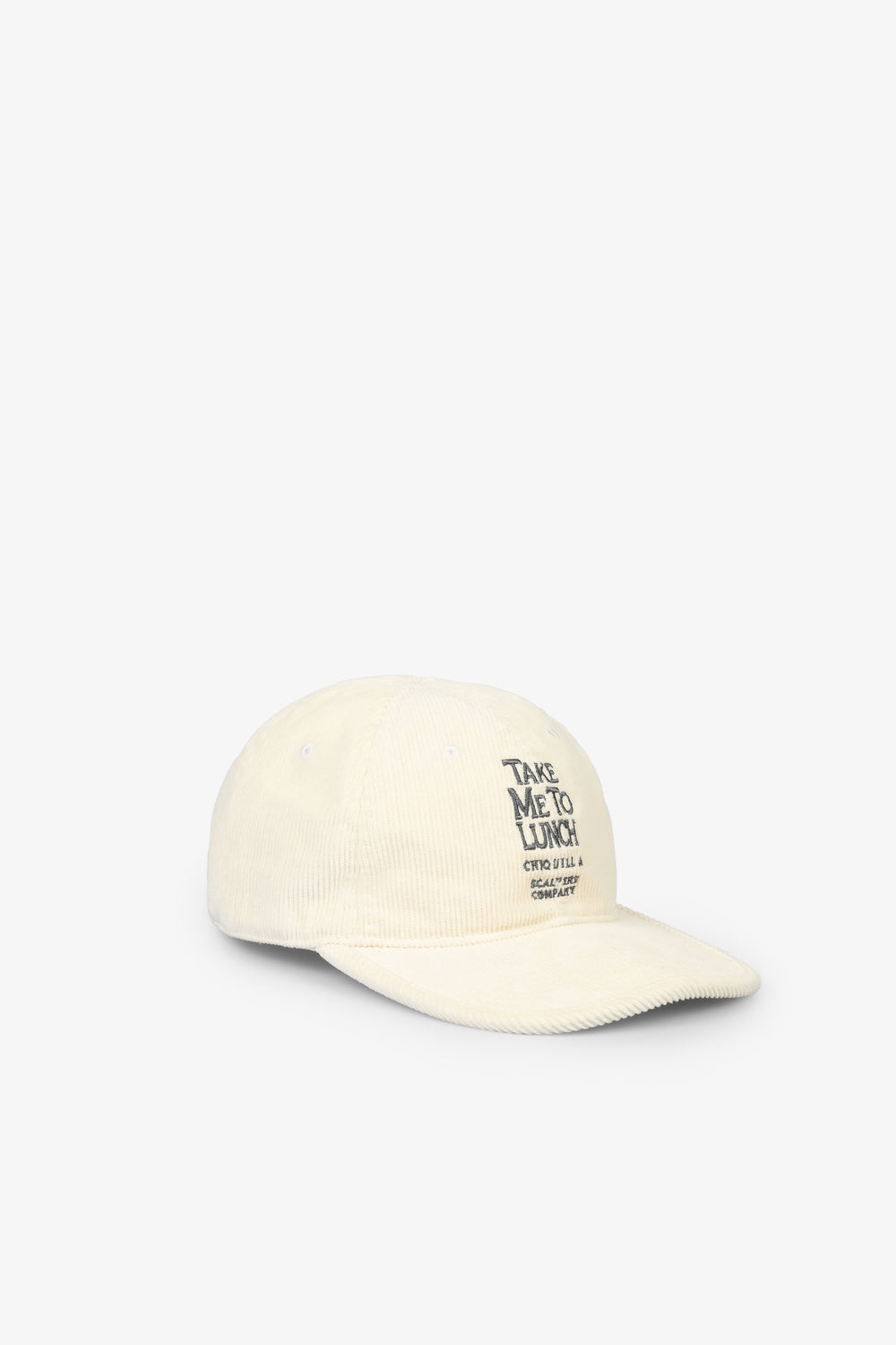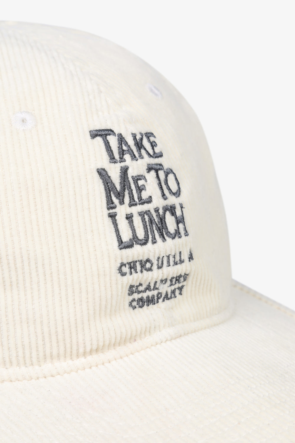 Gorra de pana con texto bordado frontal