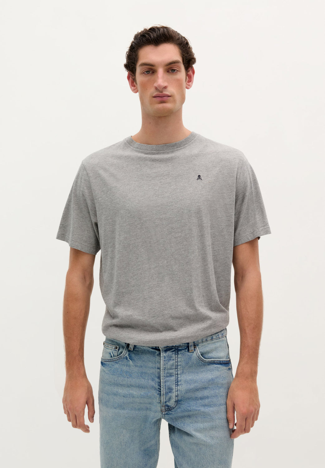 Camiseta básica con calavera bordada.