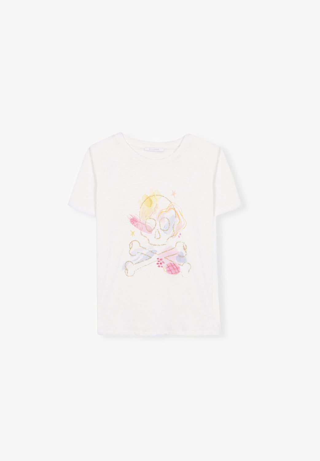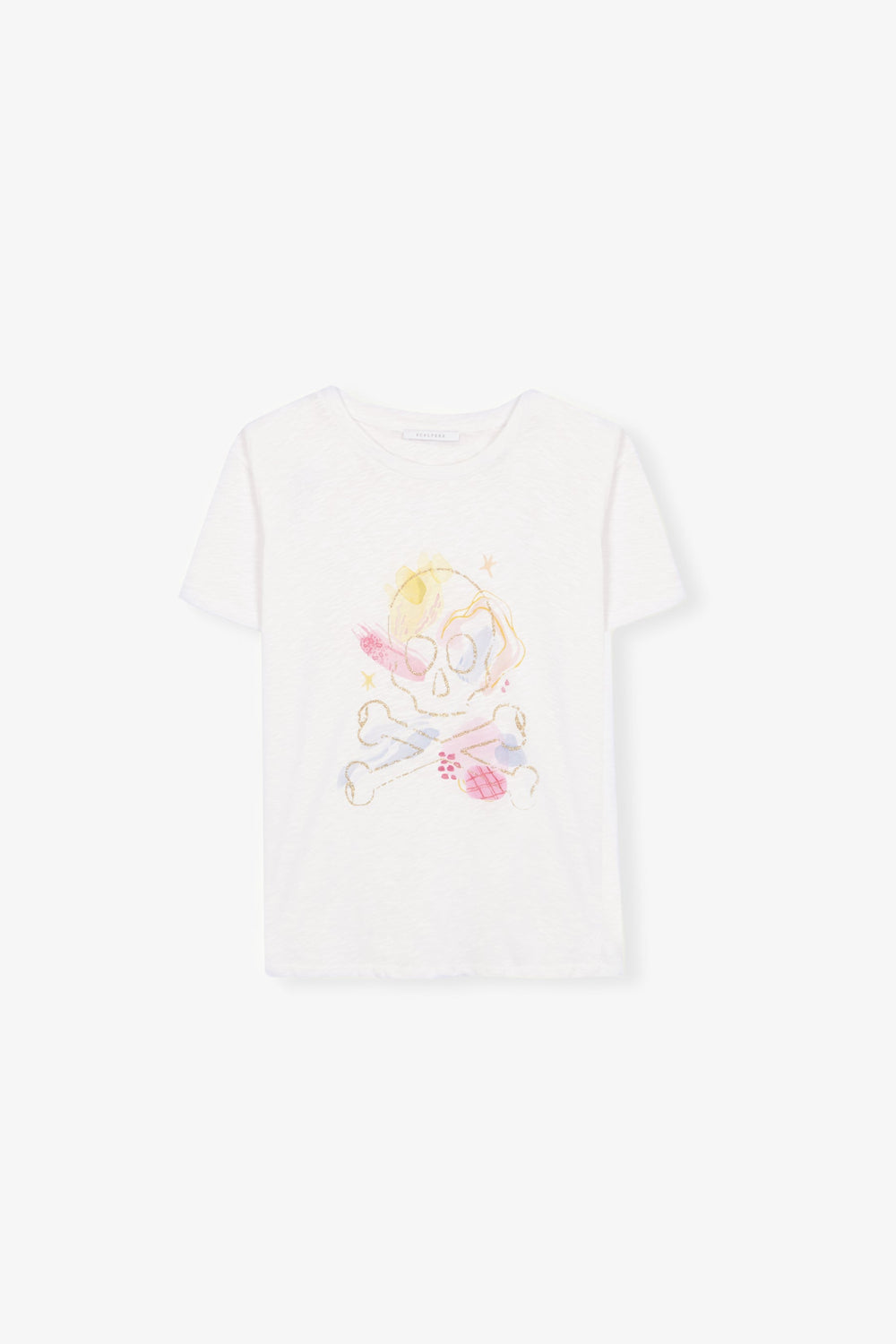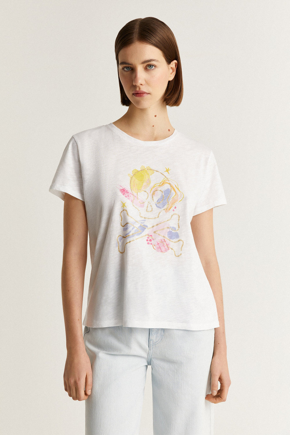 Camiseta con print frontal y detalle contorno calavera en glitter.