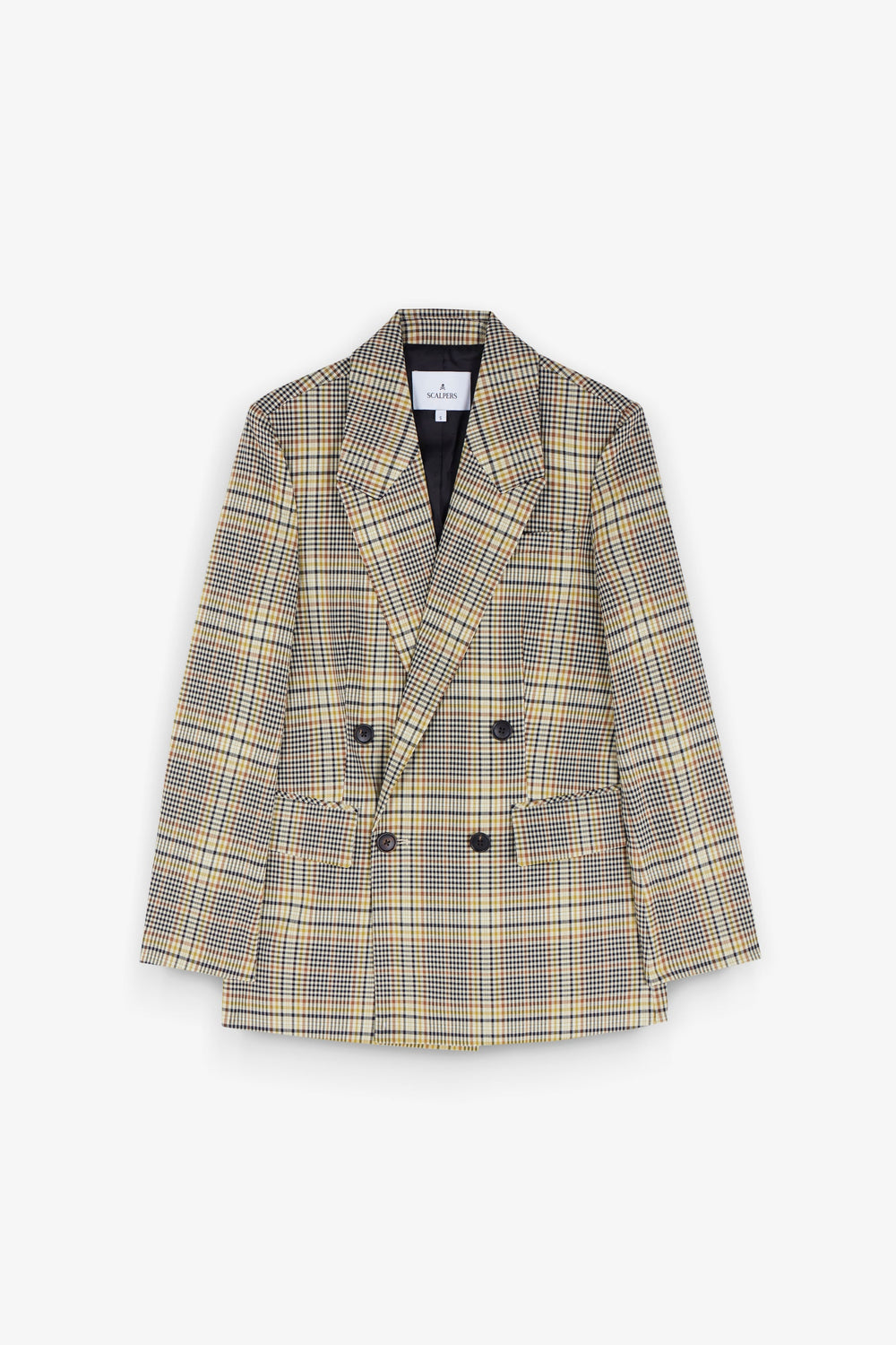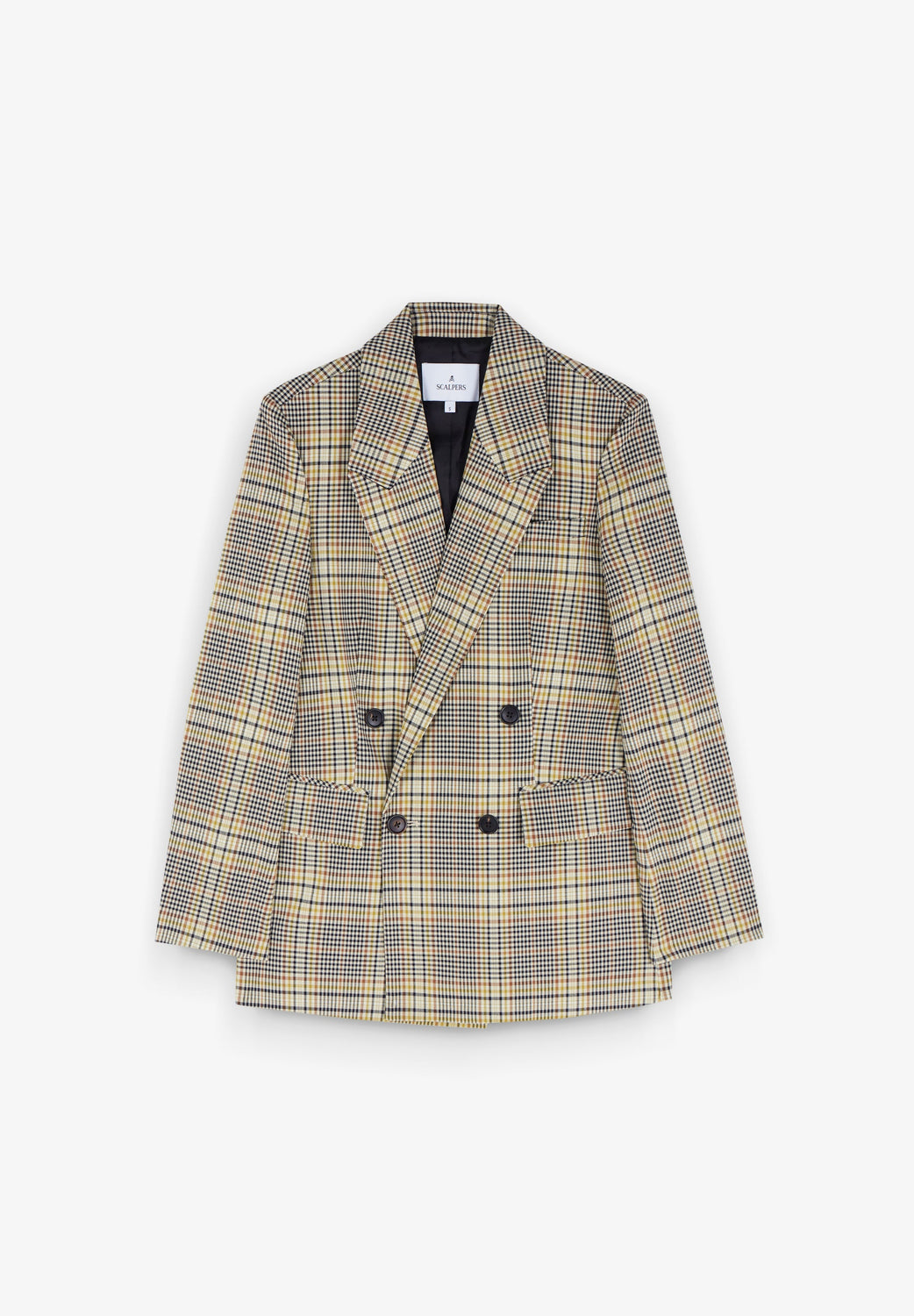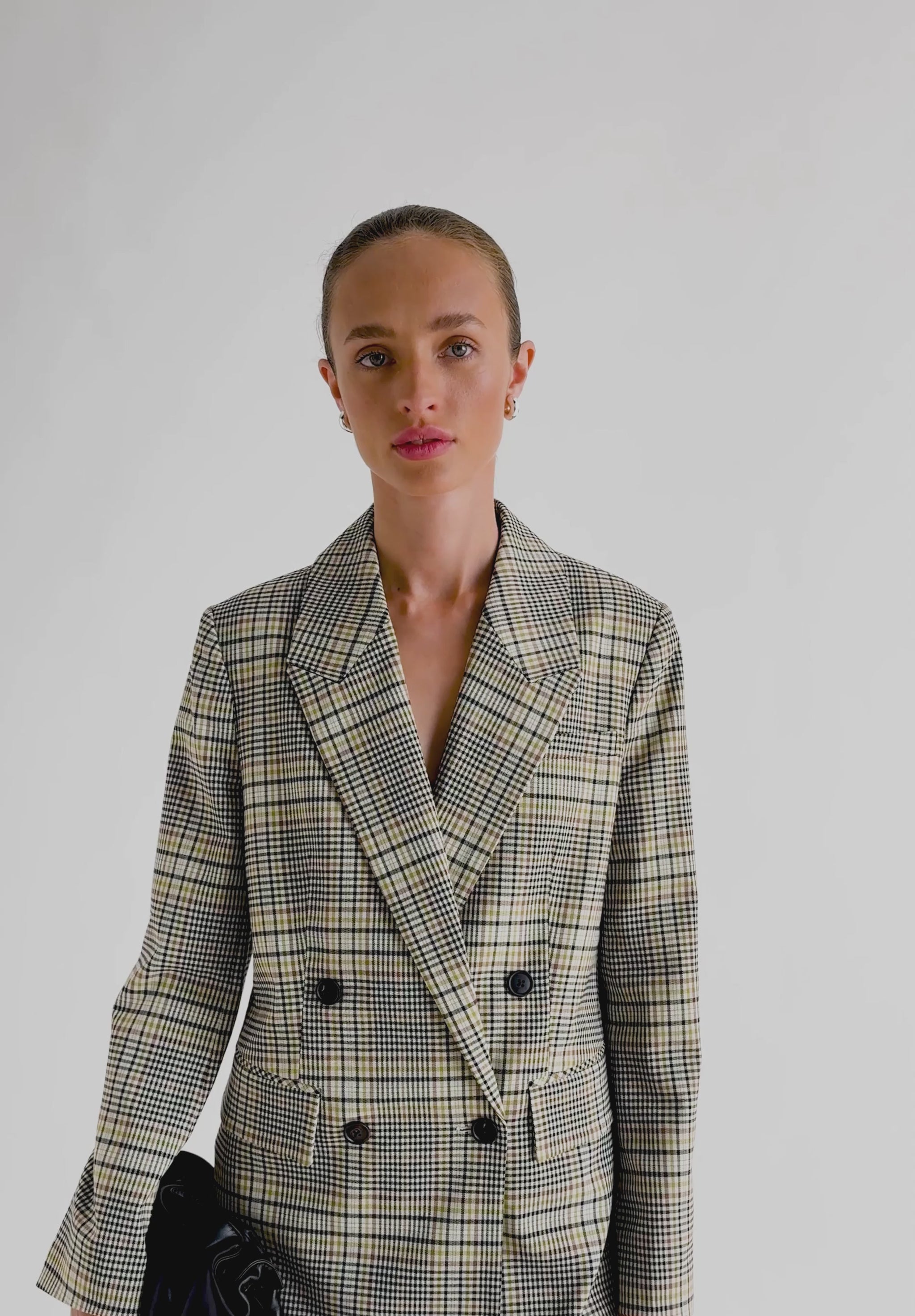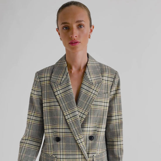 Blazer de cuadros confeccionada en tejido ligero. Regular fit, cuello con solapas y cierre cruzado con botones. Manga larga y bolsillos con solapa.