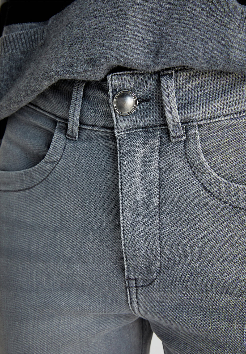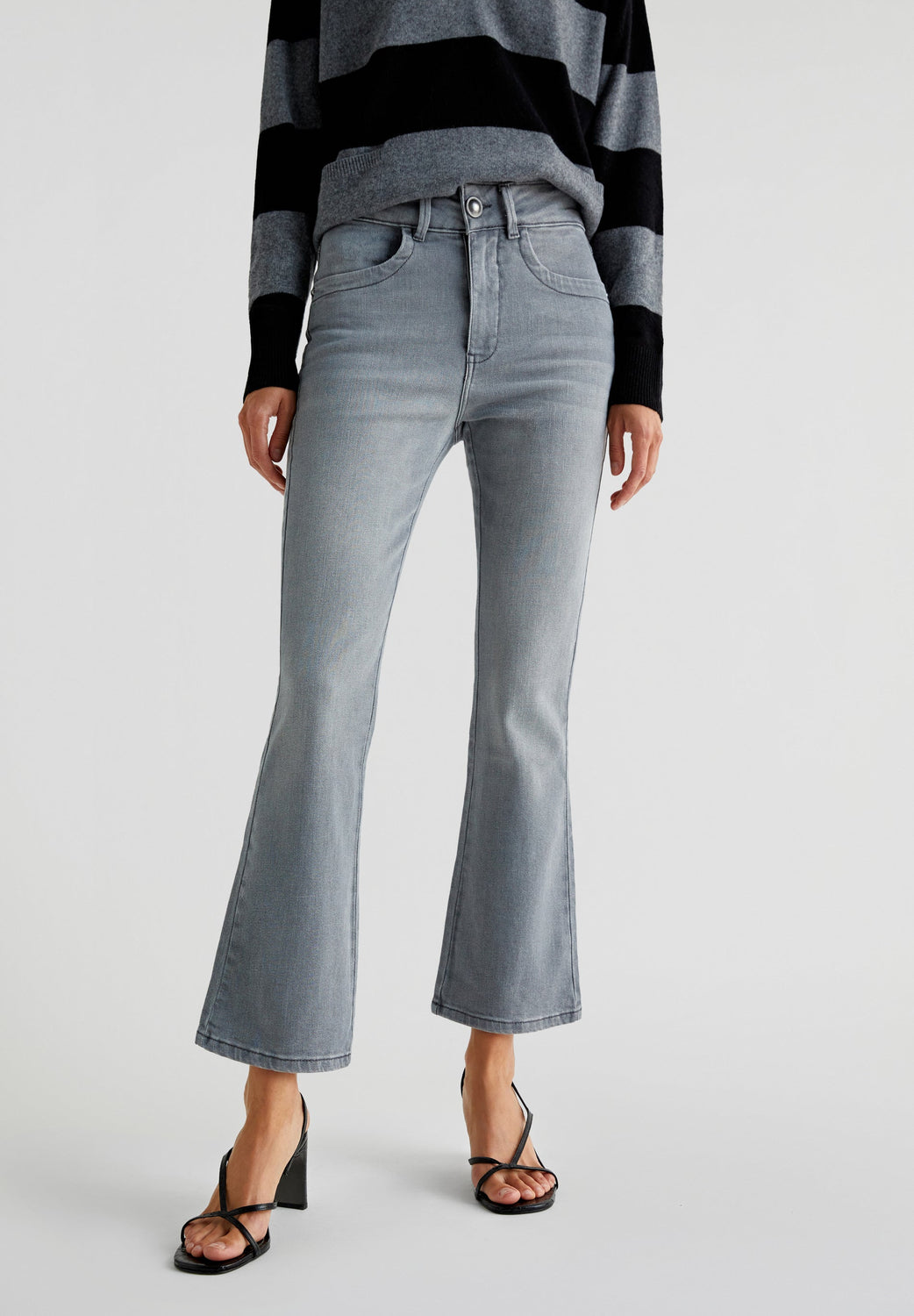 Jeans confeccionados en algodón ligeramente elástico. Corte ankle flare, cierre con botón y cremallera. Bolsillos laterales y traseros y trabillas en cintura.