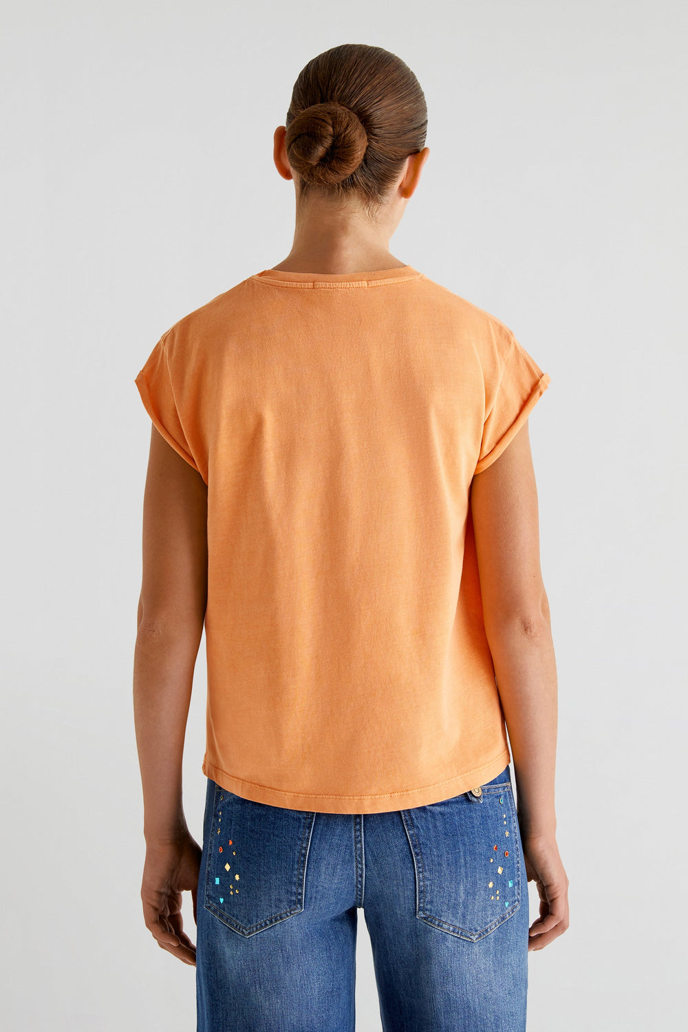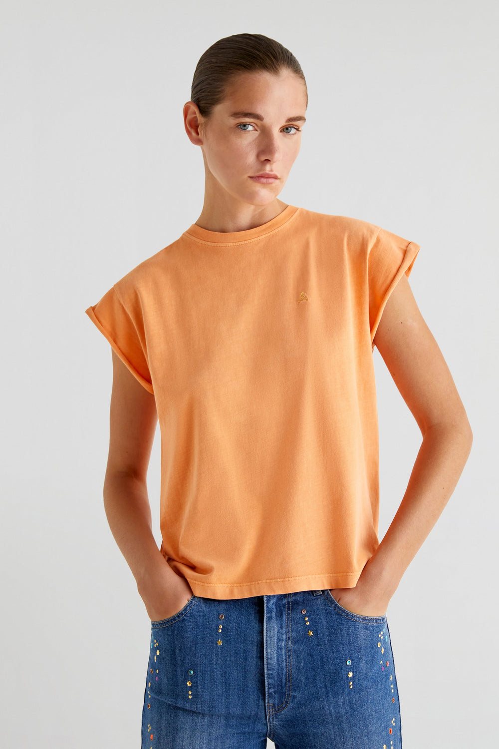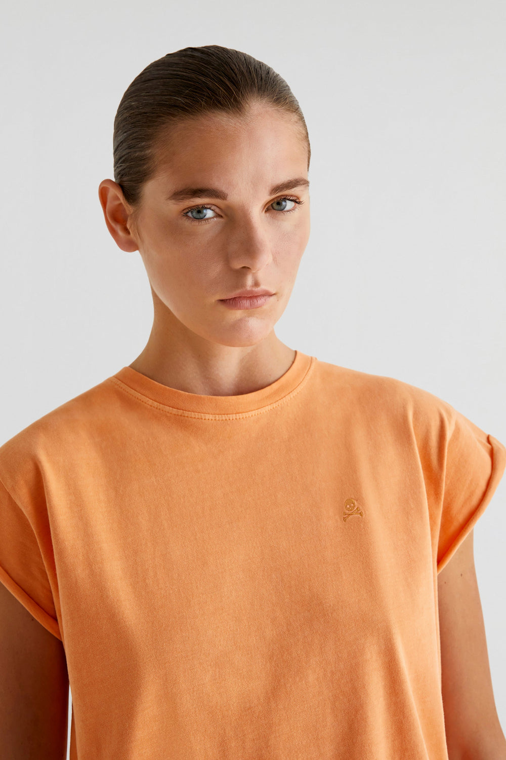 Camiseta confeccionada en 100% algodón BCI. Regular fit, cuello redondo y manga corta. Detalle de calavera bordada a tono.