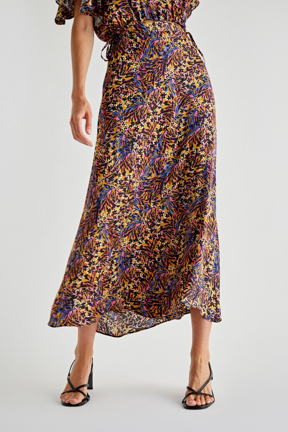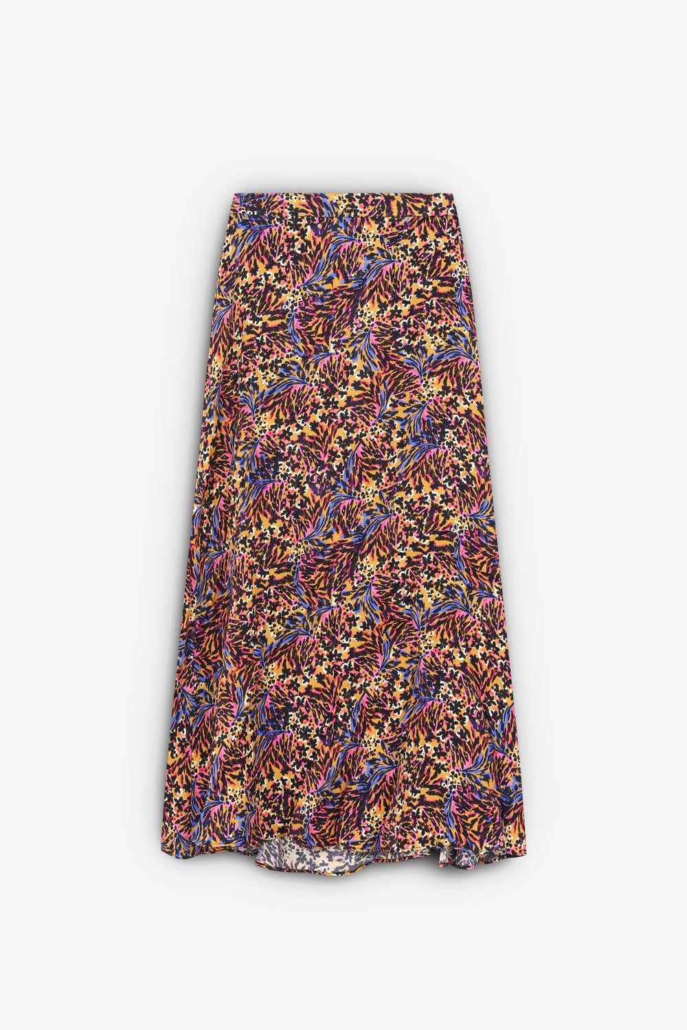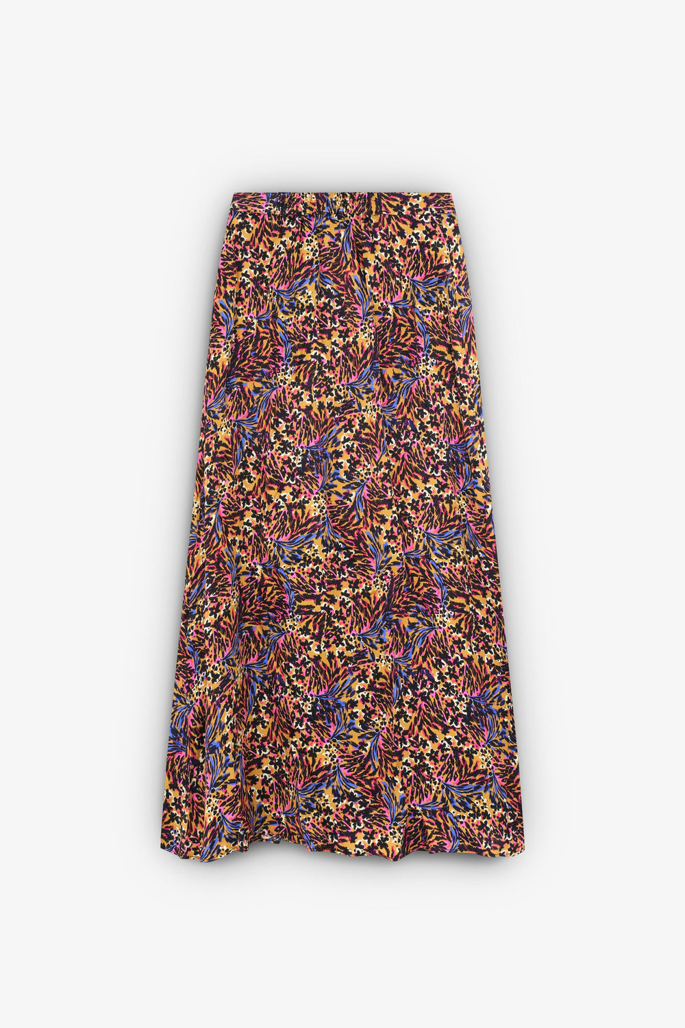 Falda midi fluida con print. Corte Regular Fit, cierre con cremallera.