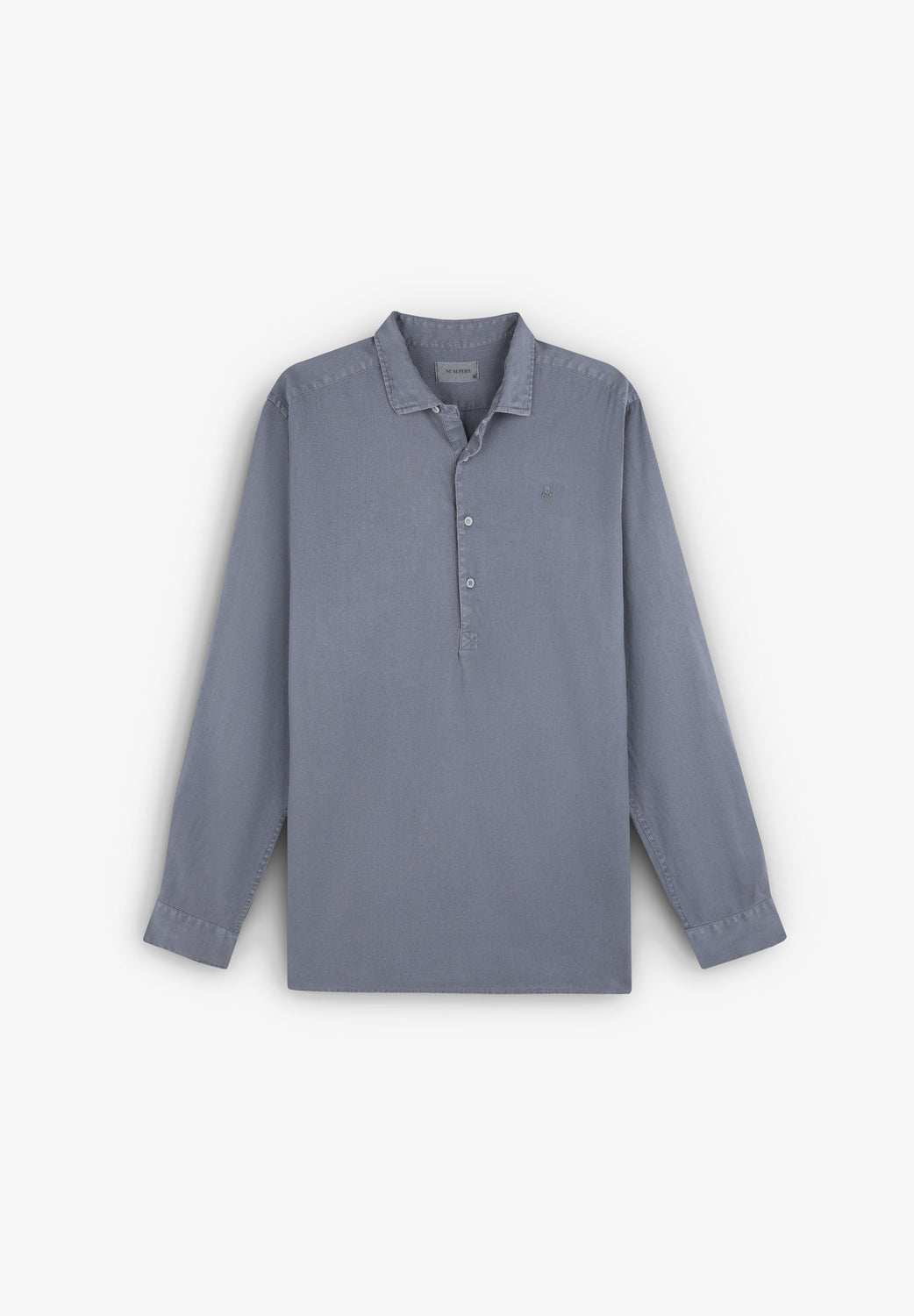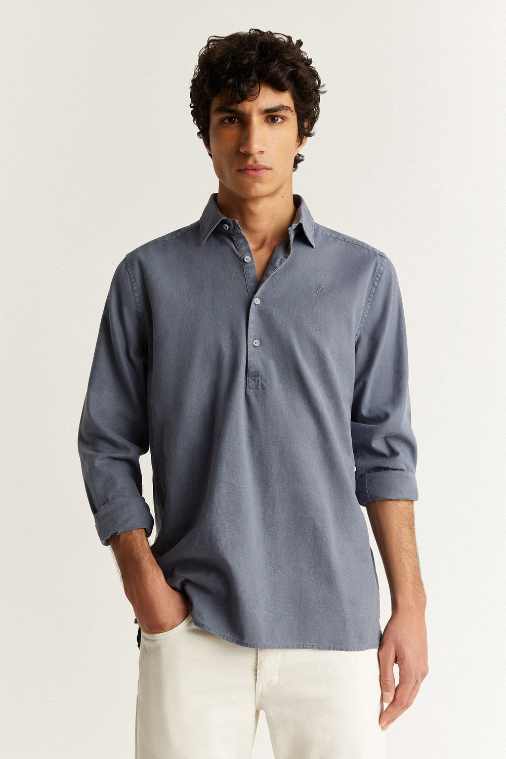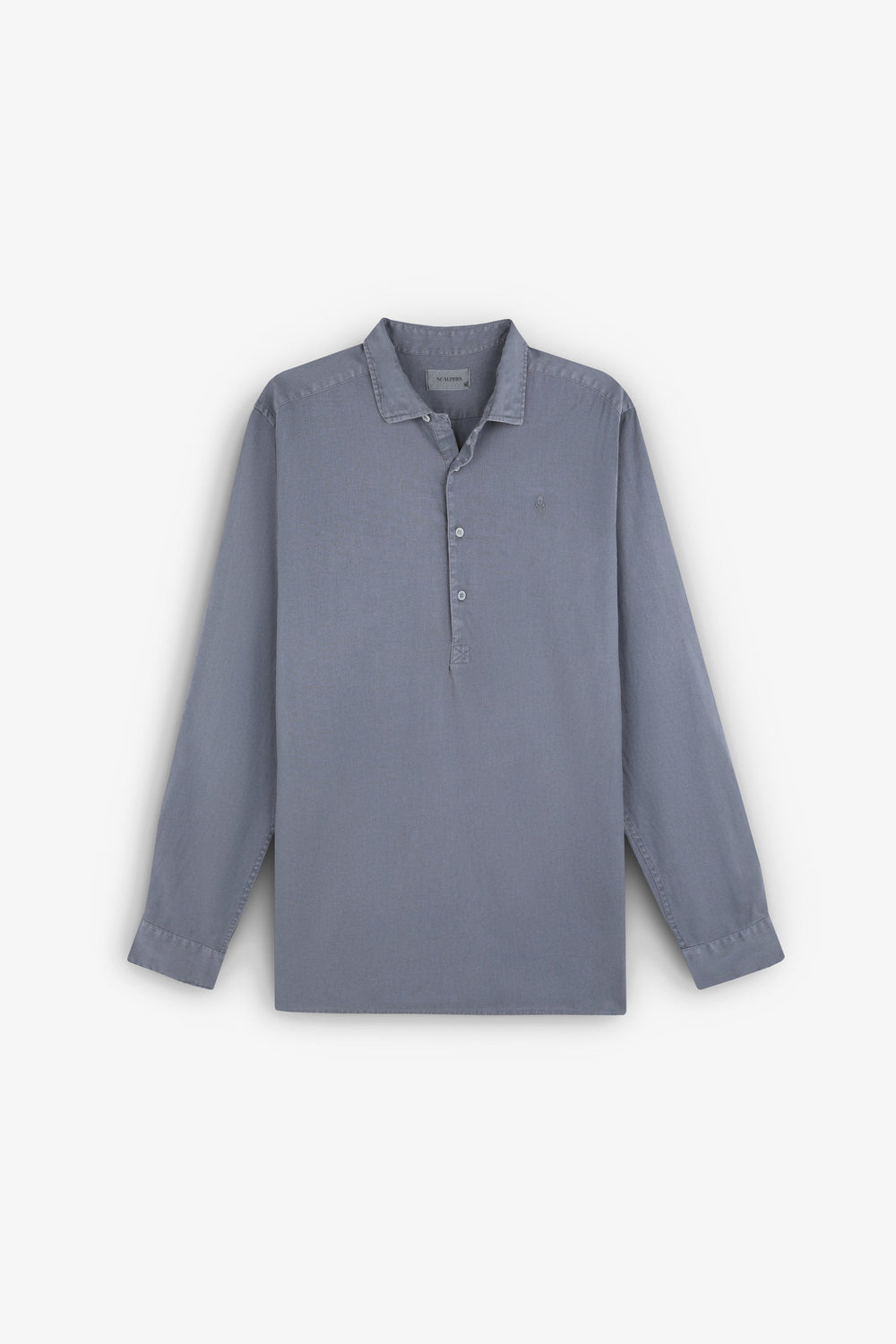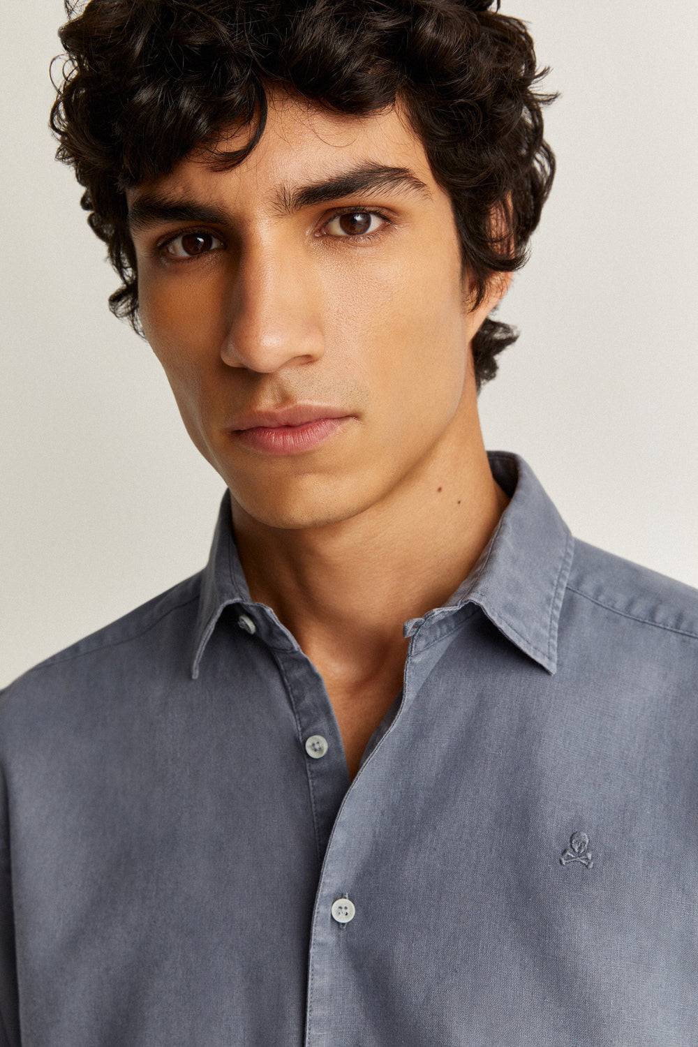 Camisa polera con detalle de calavera bordada en pecho a tono.
