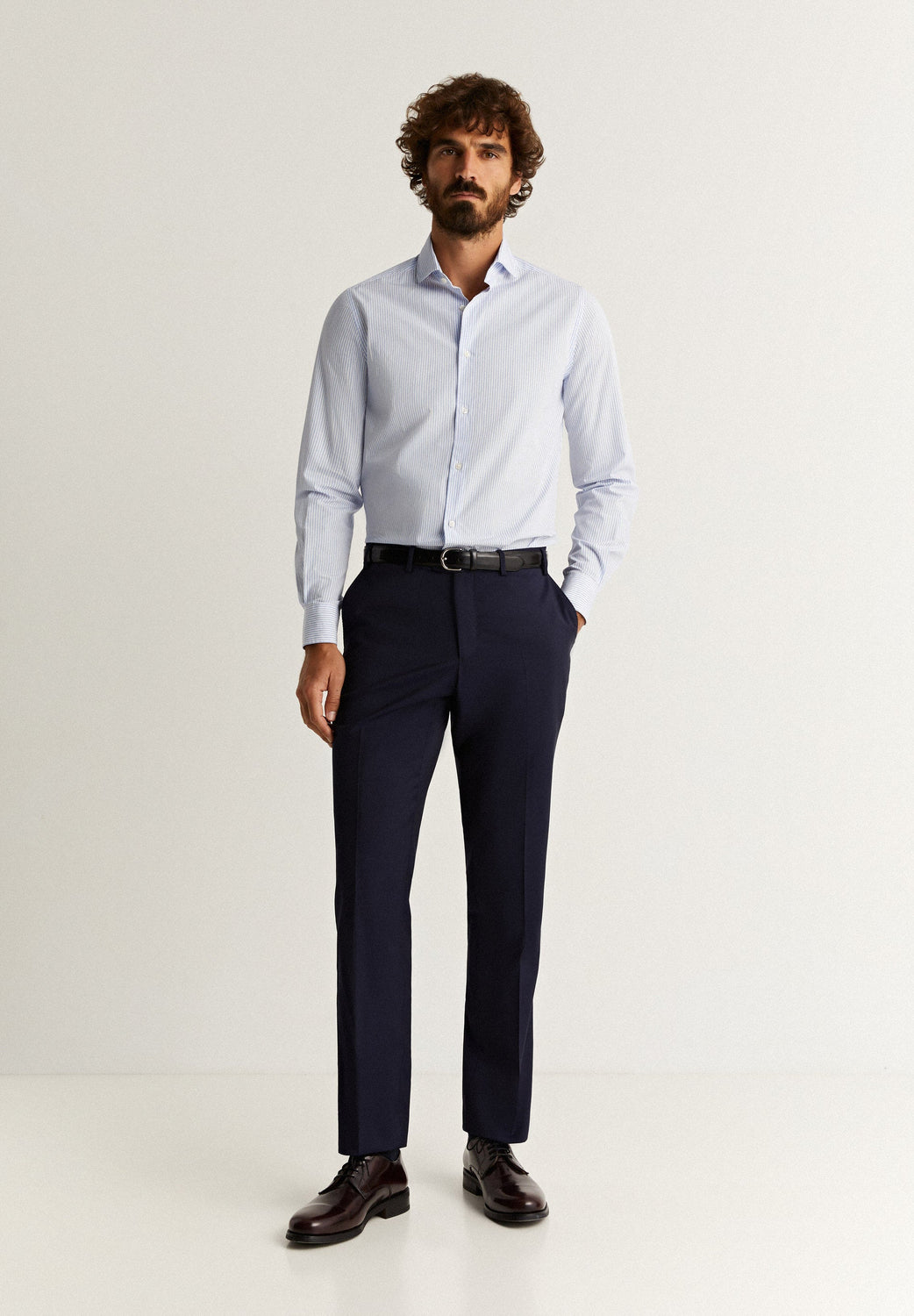 Camisa de vestir confeccionada en 100% algodón. Slim fit, cuello clásico y cierre con botones. Manga larga terminada en puño con botones.