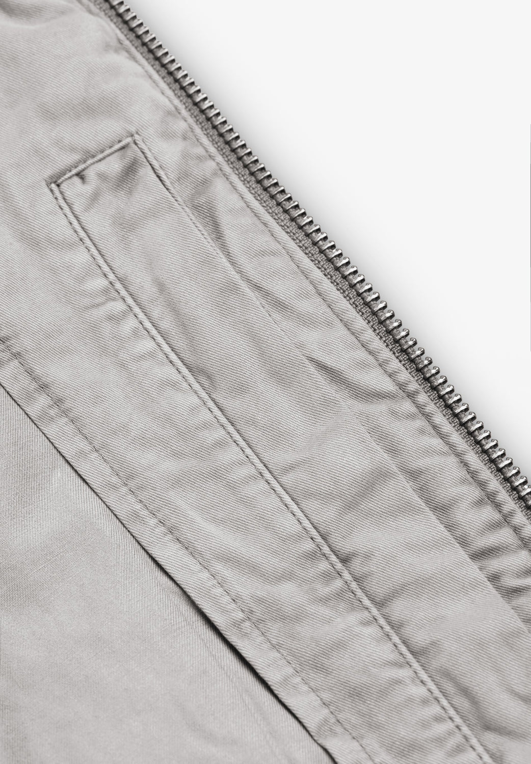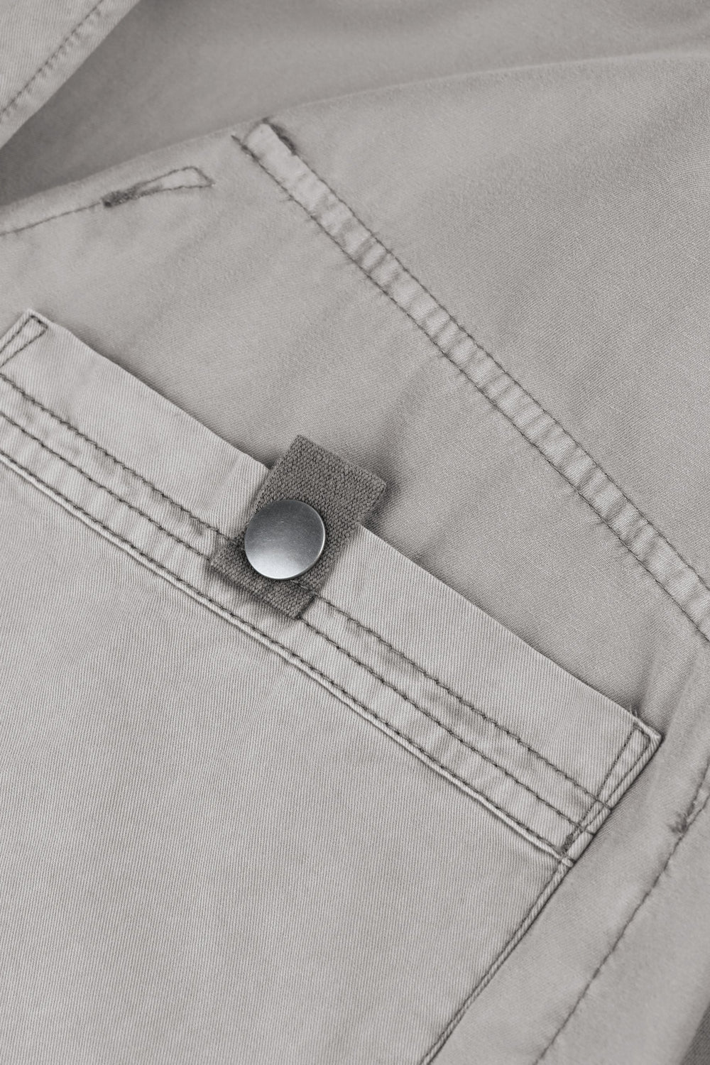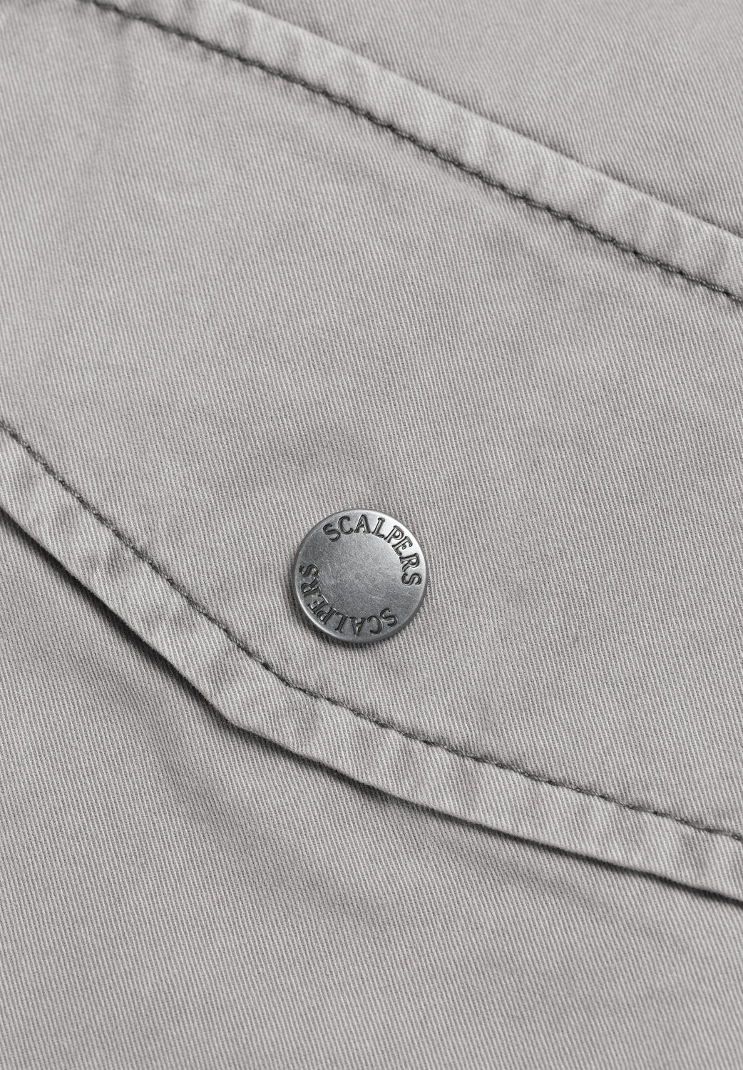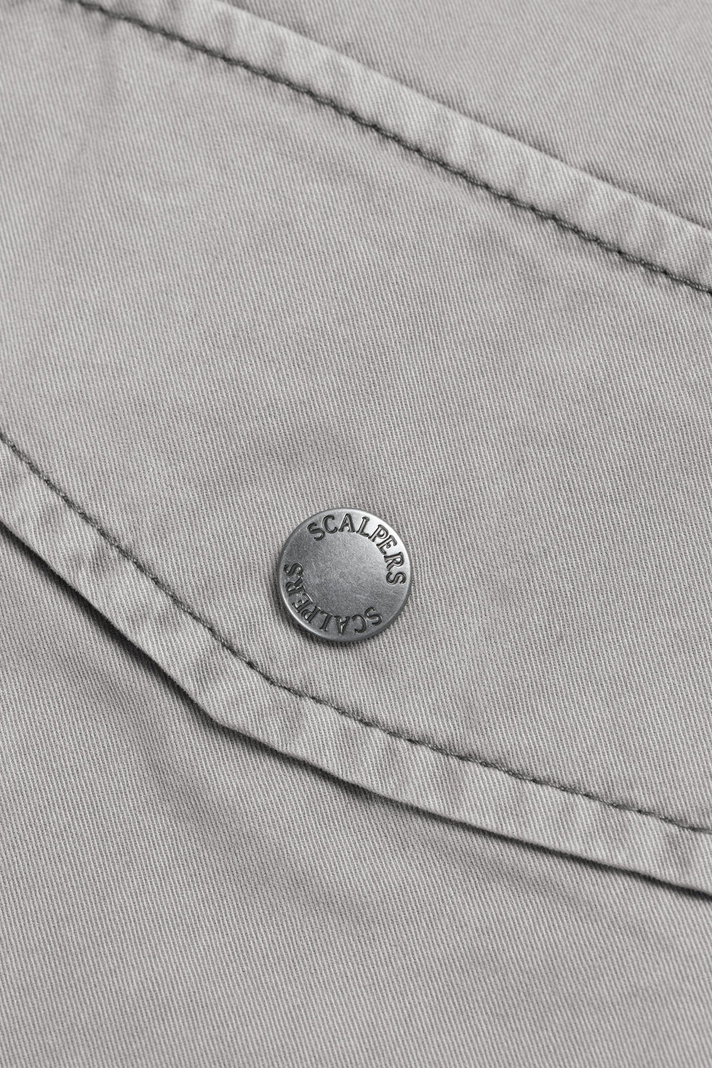 - Bolsillos laterales tipo parche inclinados con solapa y cierre con snaps