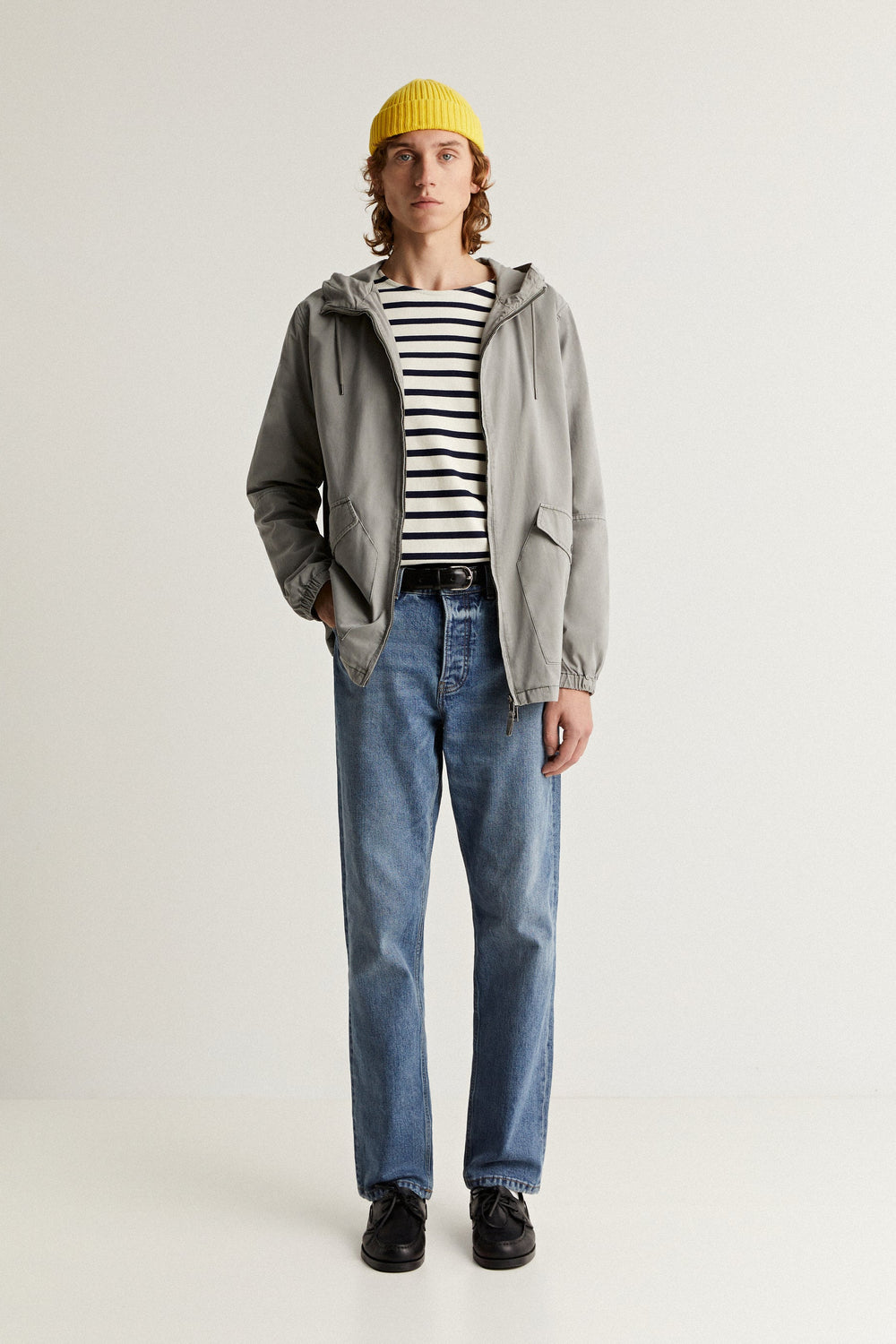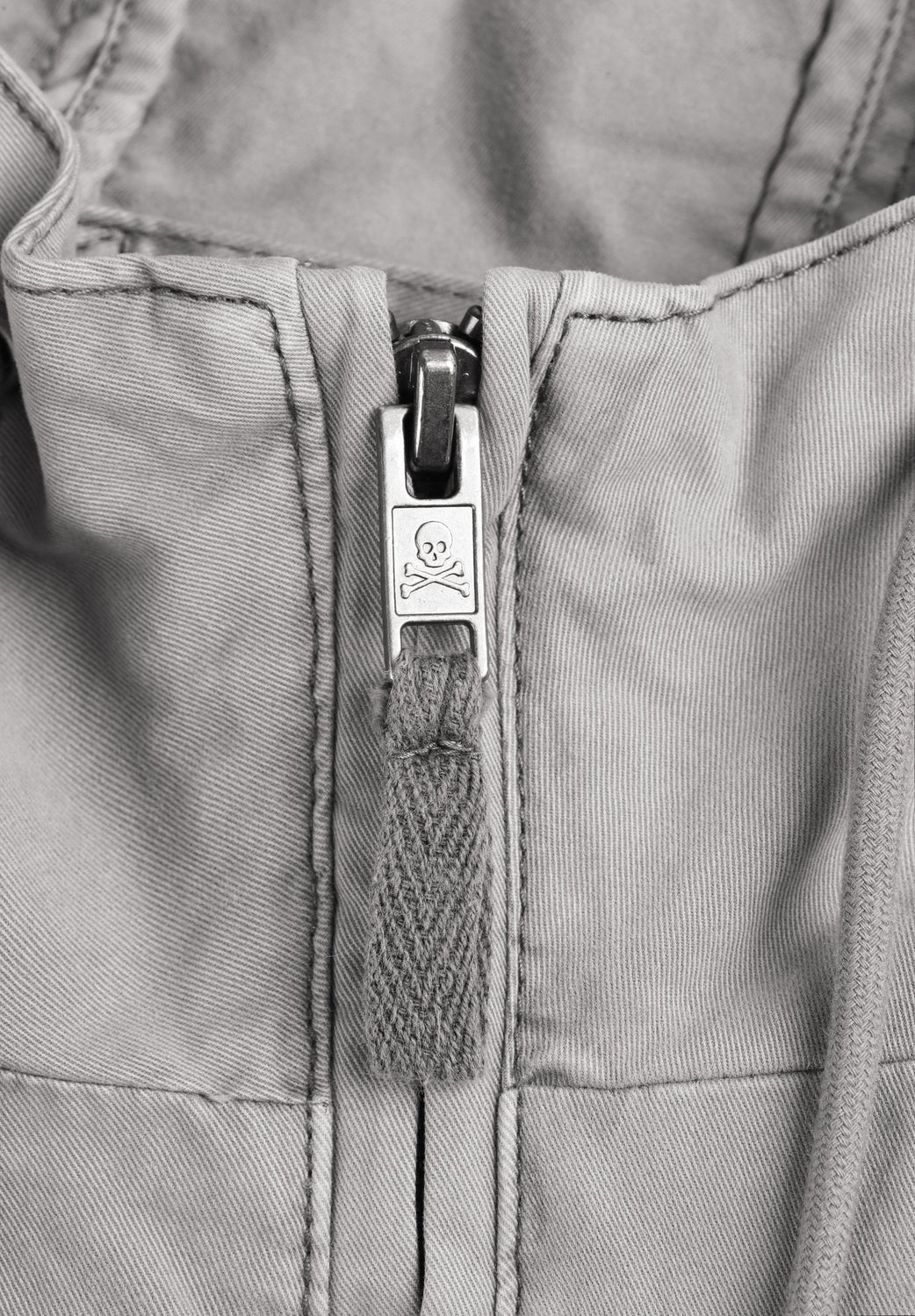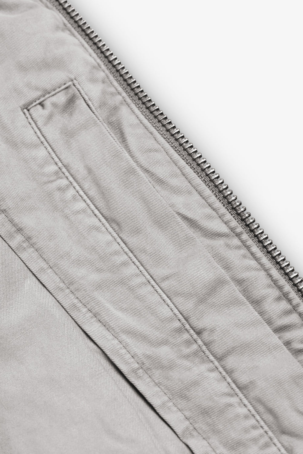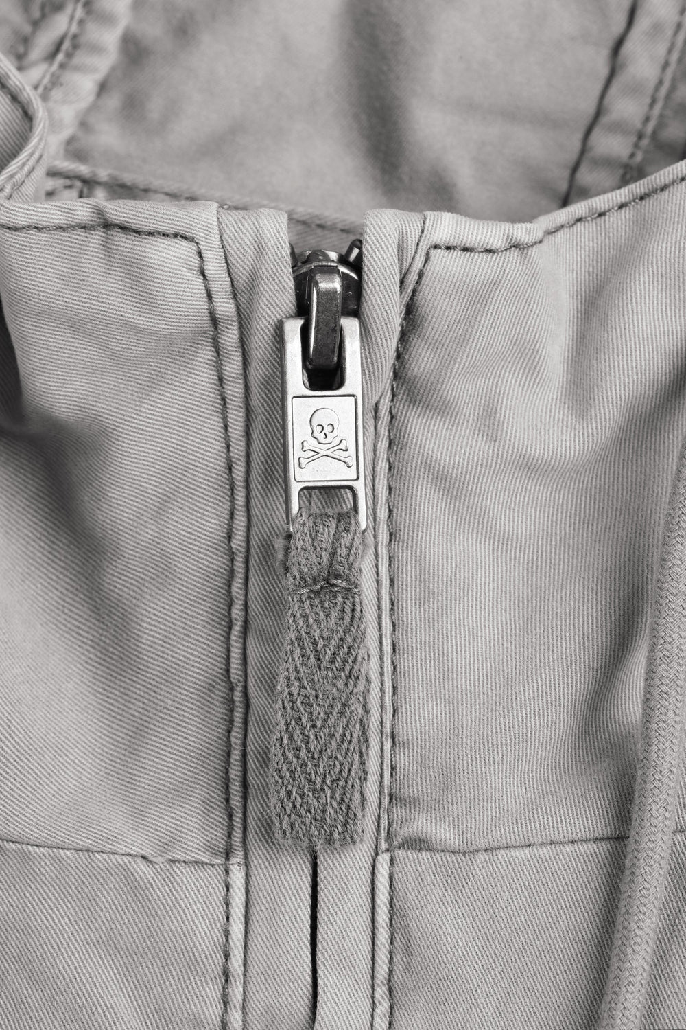 - Bolsillos laterales tipo parche inclinados con solapa y cierre con snaps