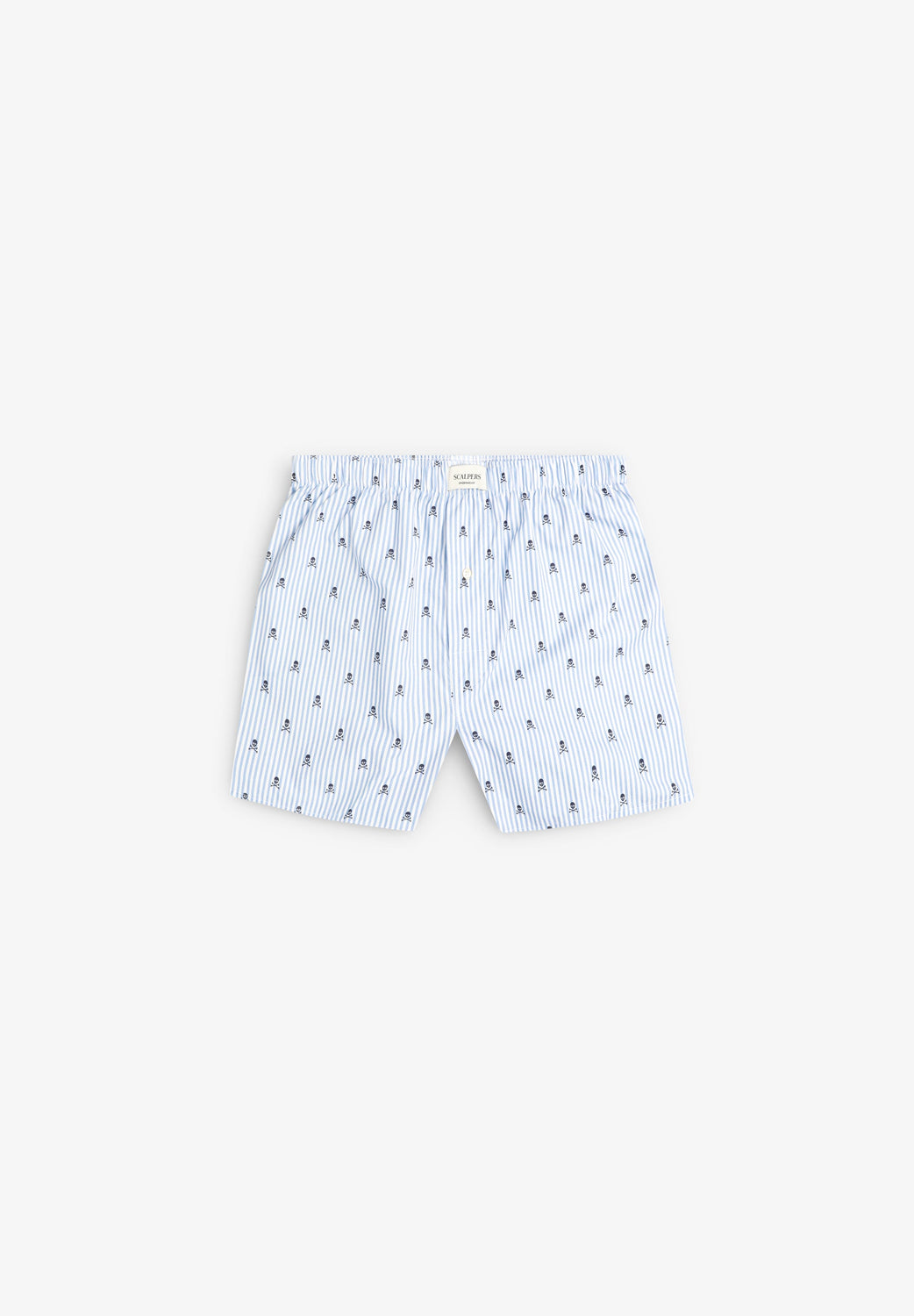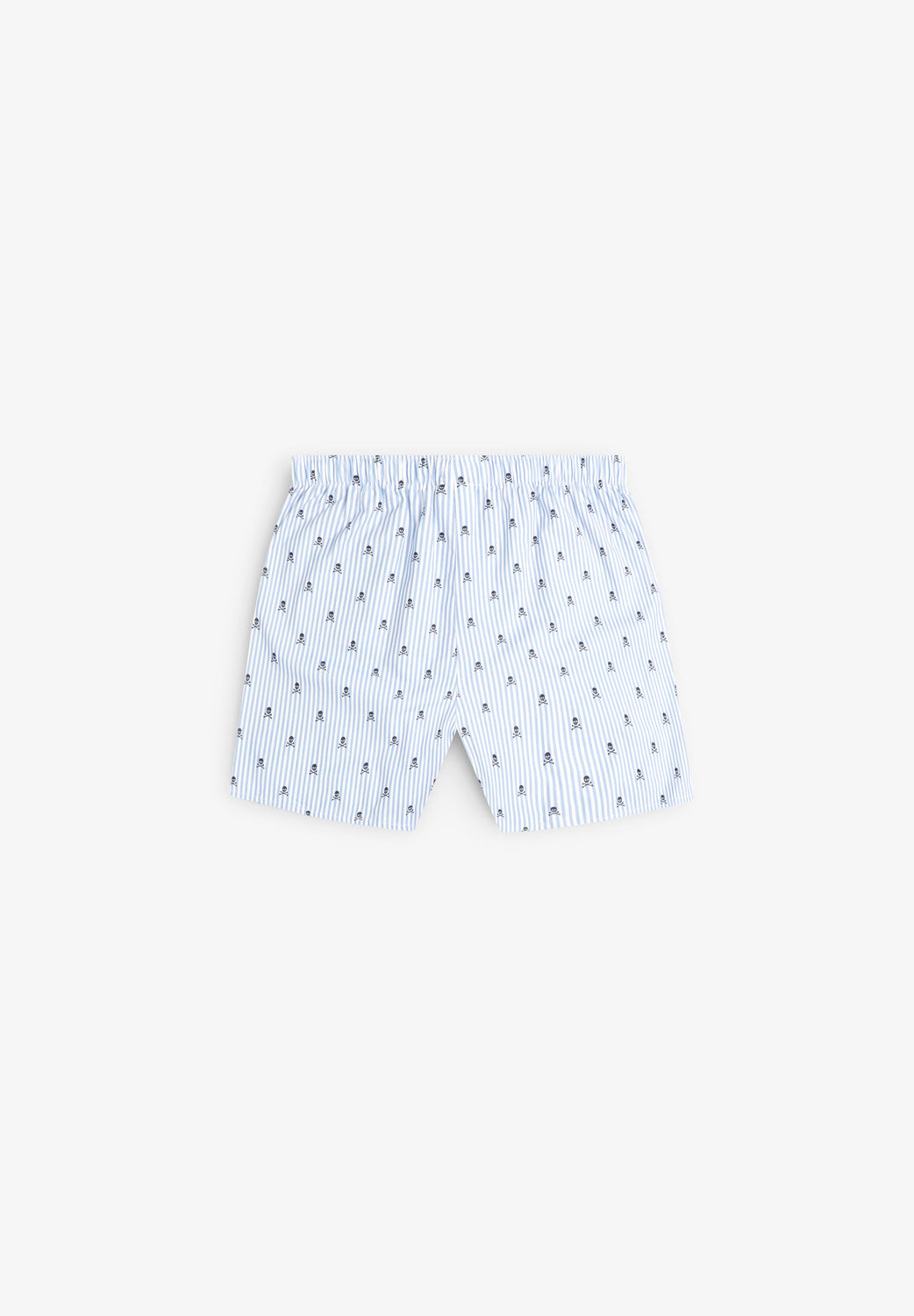 Boxer confeccionado en 100% algodón orgánico con estampado de calaveras. Cinturilla elástica. Etiqueta de tela frontal con logo.