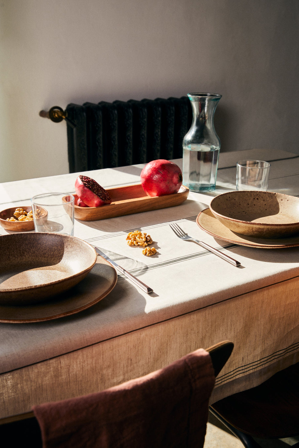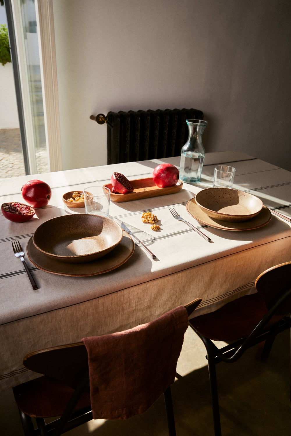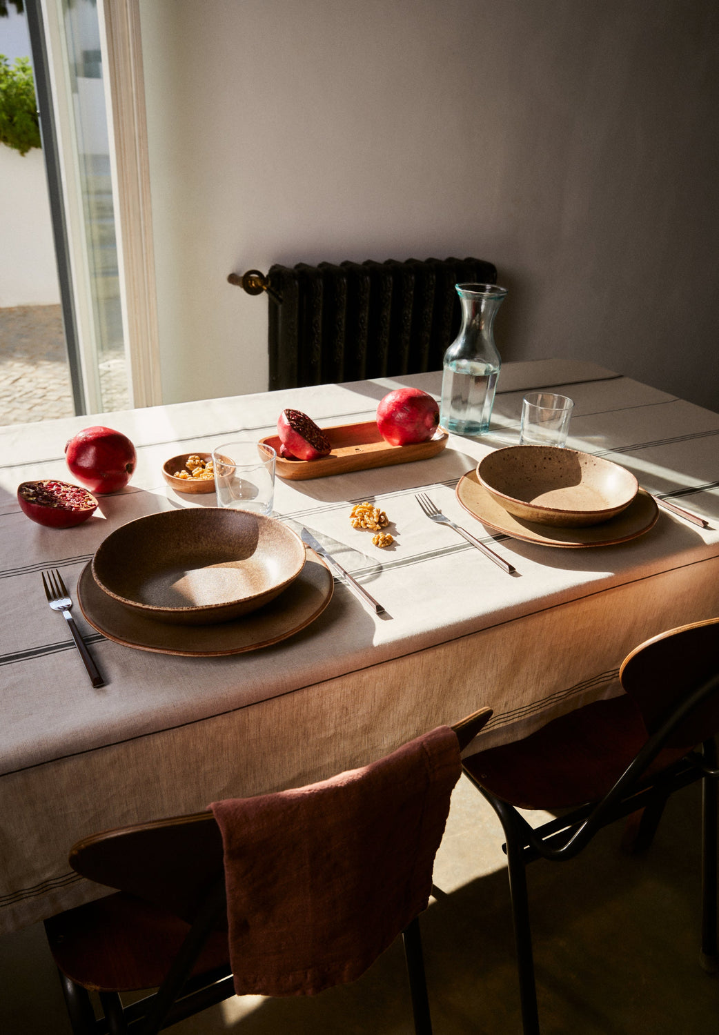 Mantel con diseño de rayas a contraste.
