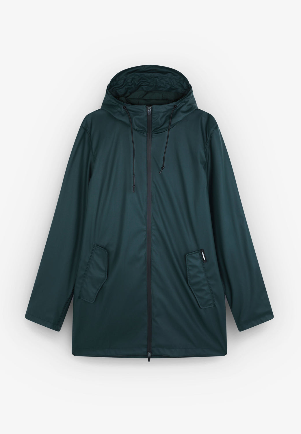 Parka impermeable confeccionado en tejido técnico. Regular fit, cuello con capucha ajustable con cordón y cierre con cremallera termosellada. Bolsillos laterales con tapeta con snap.