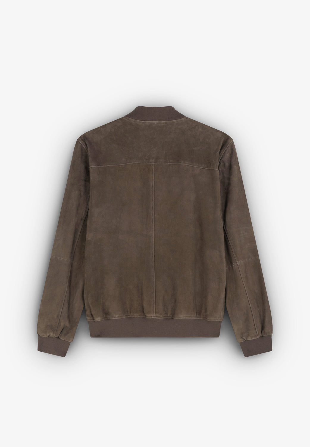 Chaqueta confeccionada en 100% piel. Regular fit, cierre con cremallera y cuello en rib. Manga larga terminada en puño con ribs y bolsillos laterales.
