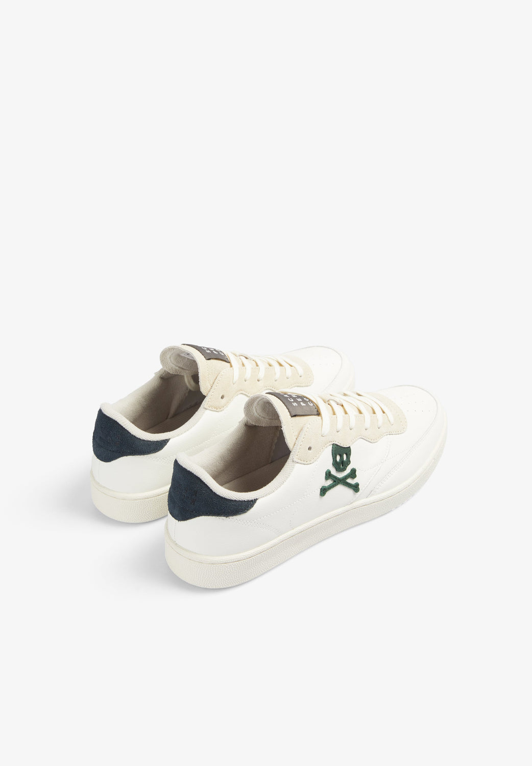 Sneakers con calavera lateral a contraste confeccionada en piel. Cierre con cordones moteados, suela de TPR, detalle a contraste en talón y detalle de etiqueta en lengüeta personalizada.