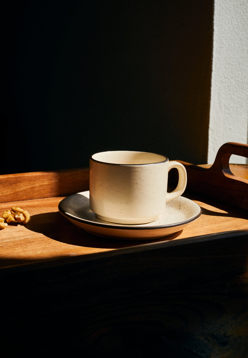 PLATO TAZA CAFÉ CERÁMICA FILO