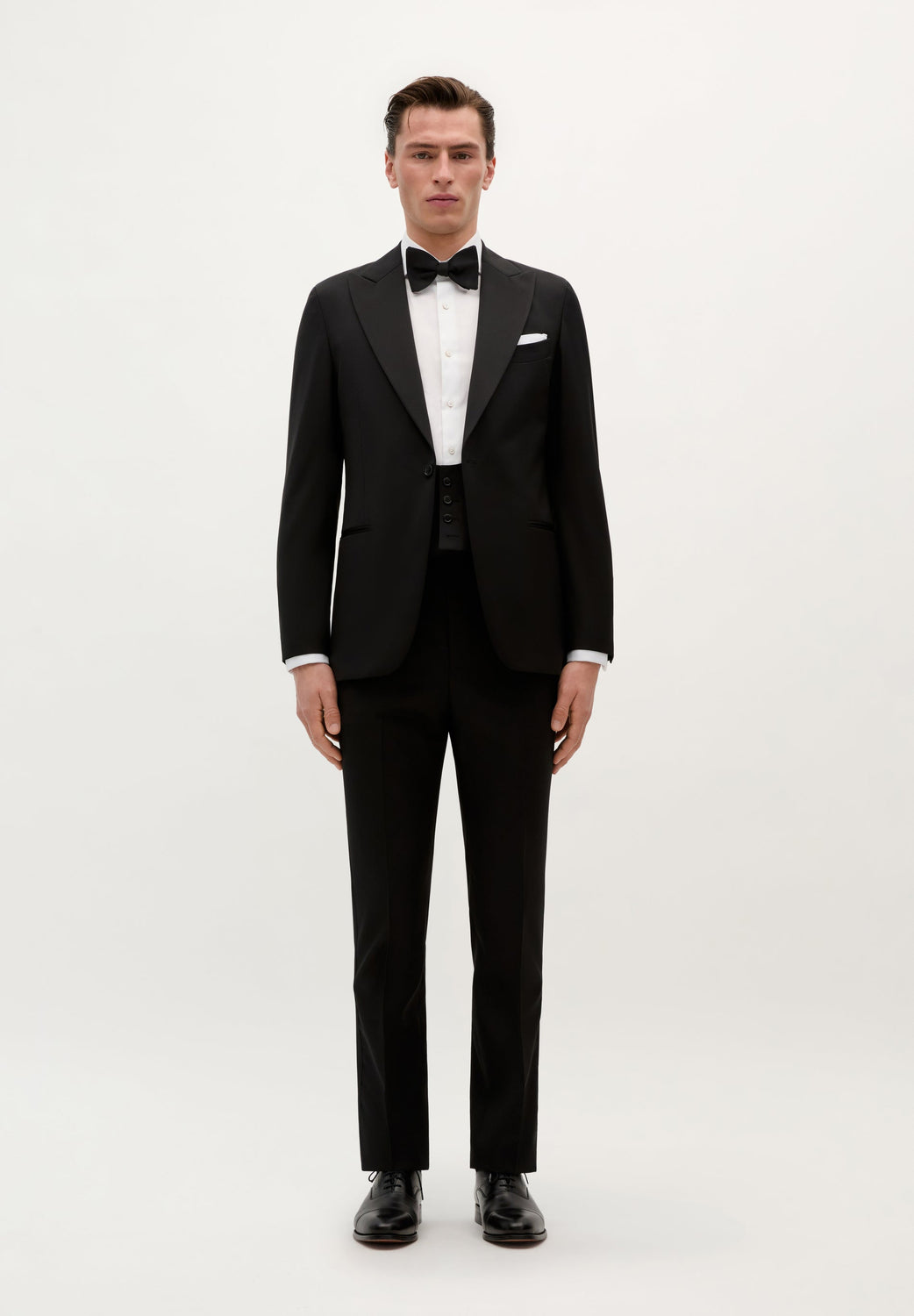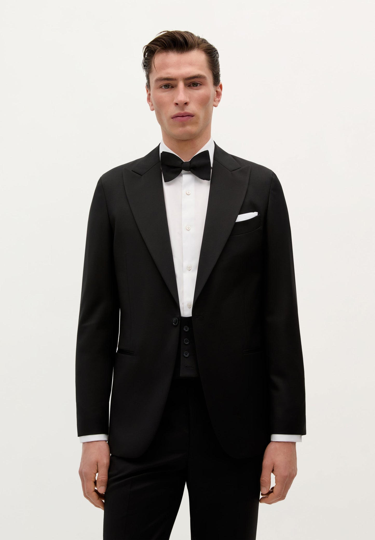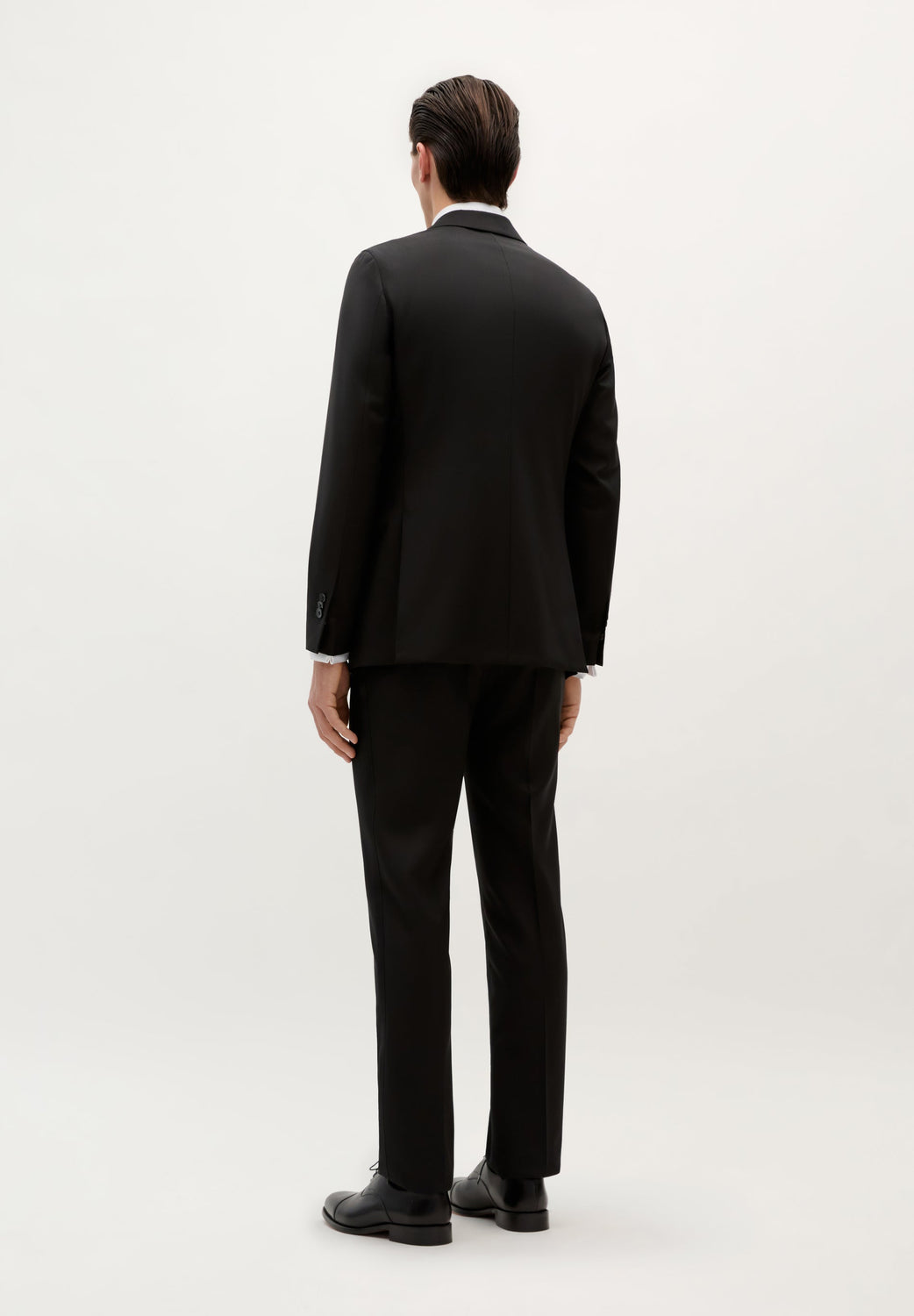 - Americana armada con corte Slim fit. Solapa de punta de lanza de raso. Cierre con botón. Manga larga terminada en puño con botones practicables. Bolsillos laterales de doble vivo. Bolsillo en pecho de vivo.