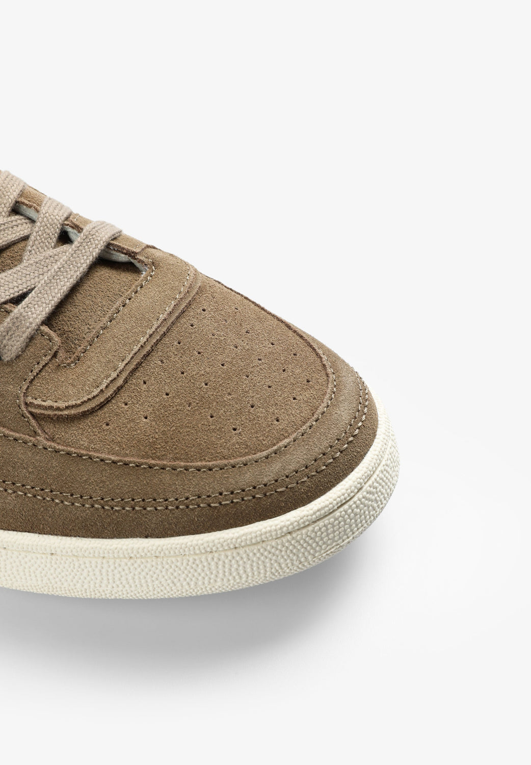 Sneakers confeccionada en piel terminada en serraje. Cierre con cordones a tono, suela de goma a contraste y parche de calavera lateral.