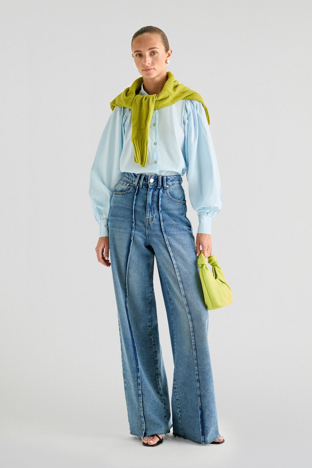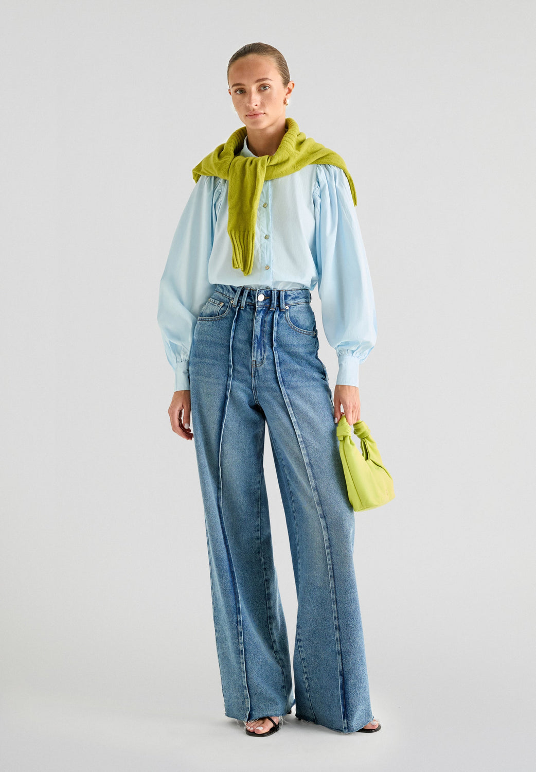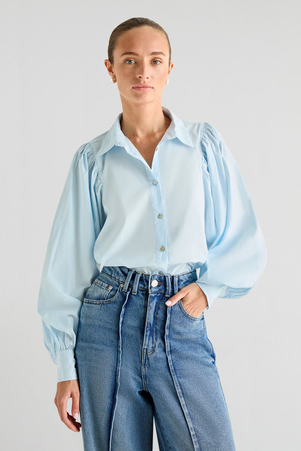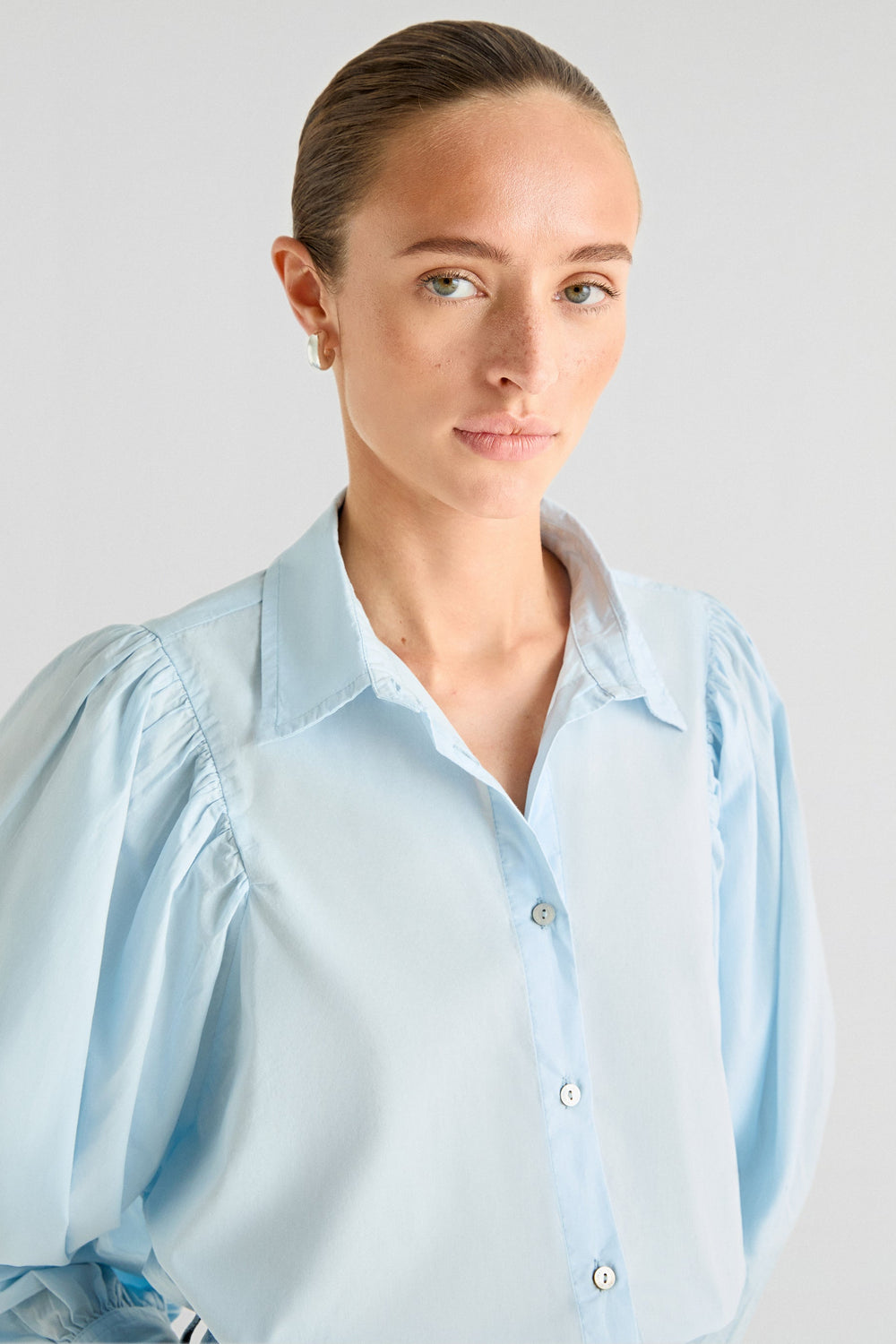 Camisa confeccionada en algodón. Regular fit, cuello clásico y cierre con botones. Manga larga abullonada terminada en puño con botones.