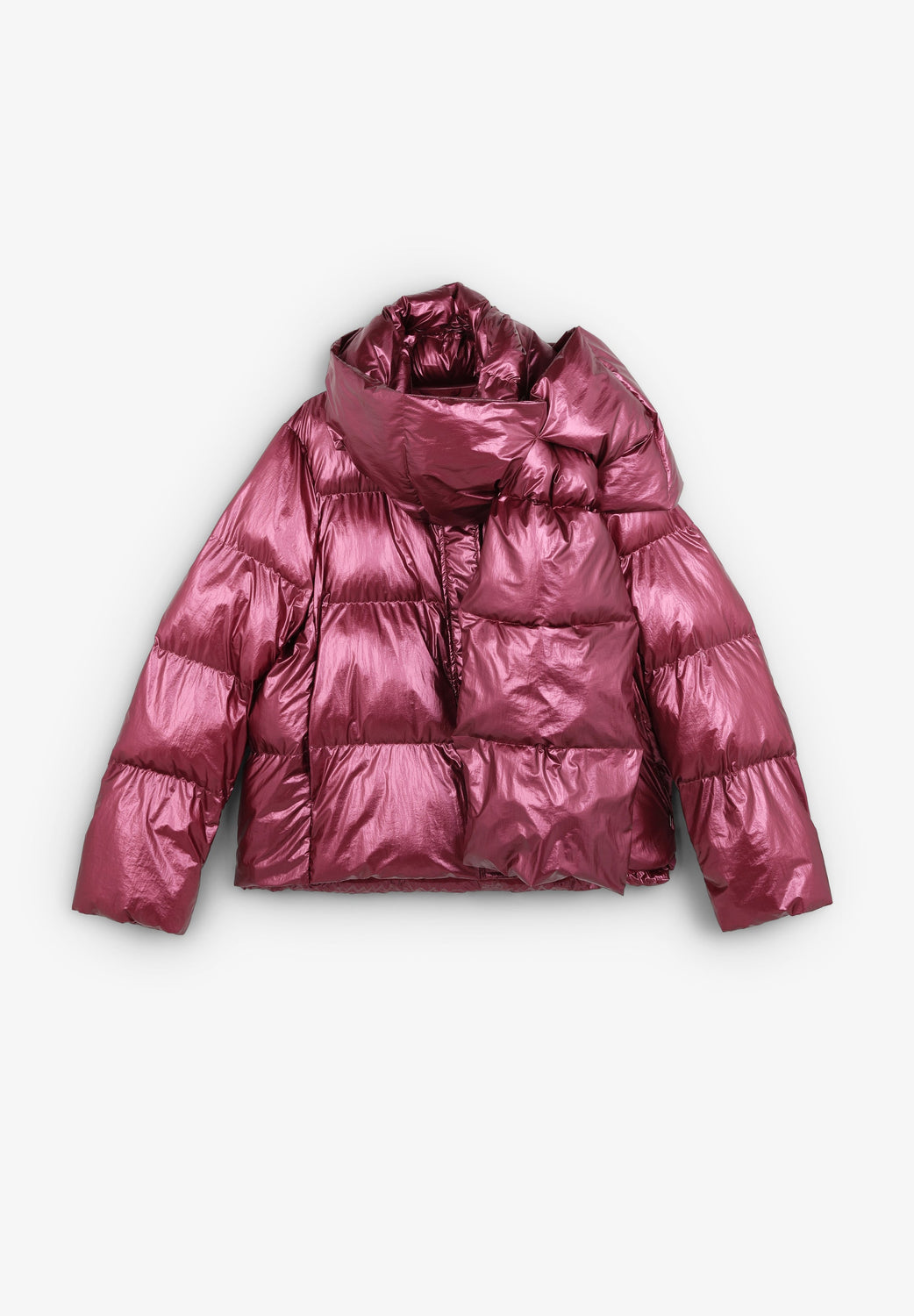 Abrigo acolchado confeccionado en tejido reciclado. Regular fit, cuello subido con bufanda incluida desmontable y cierre con cremallera y snaps. Manga larga con frunce interior y bolsillos laterales. Calavera en bufanda.