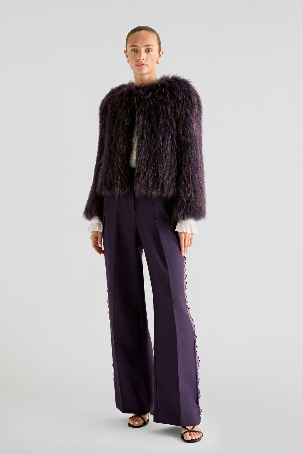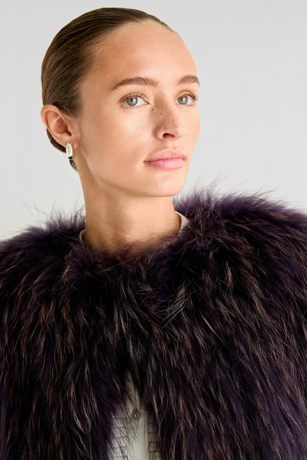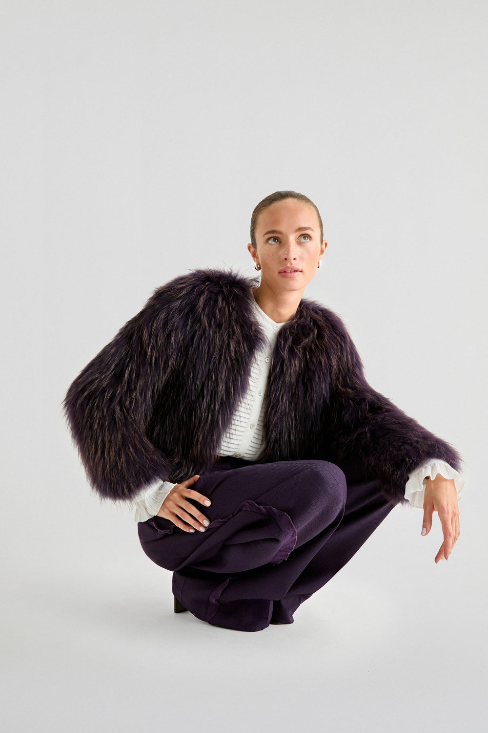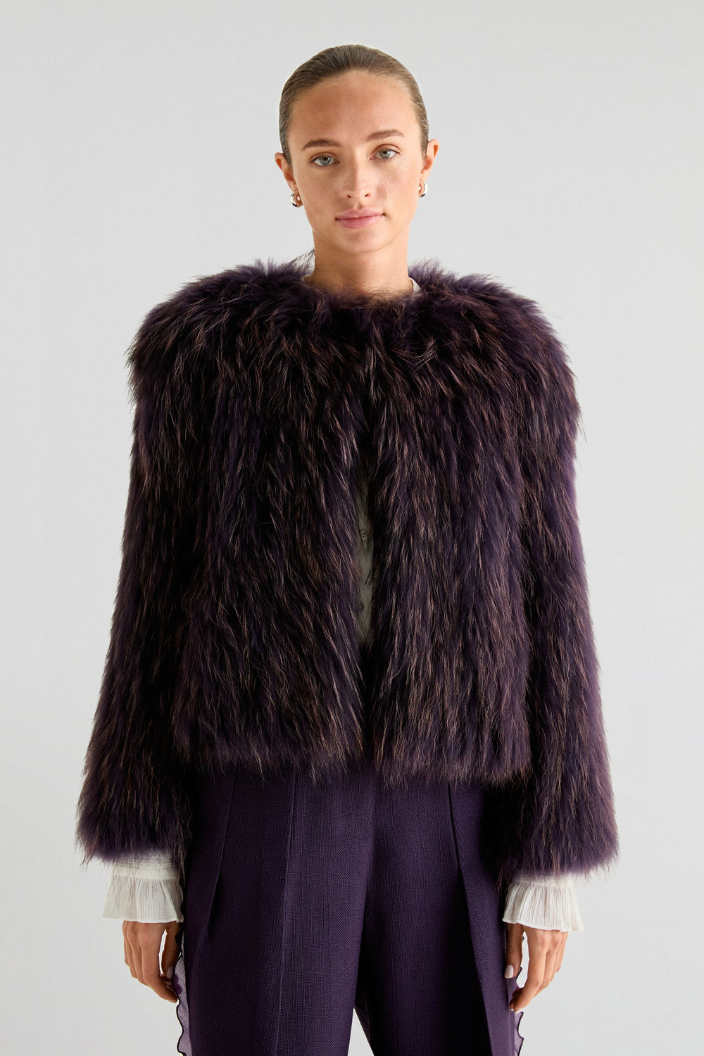 Abrigo premium confeccionada en 100% pelo. Regular fit, escote cerrado y cierre con corchetes. Manga larga.