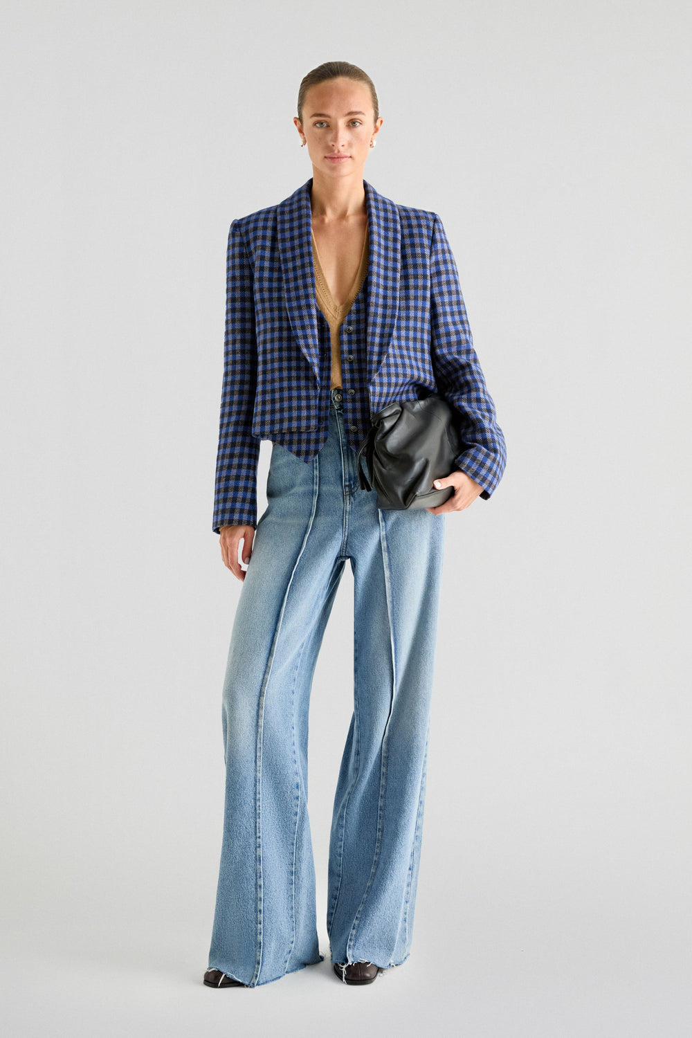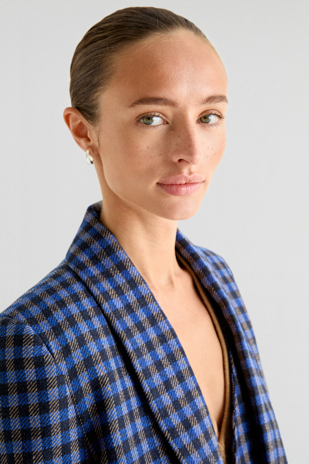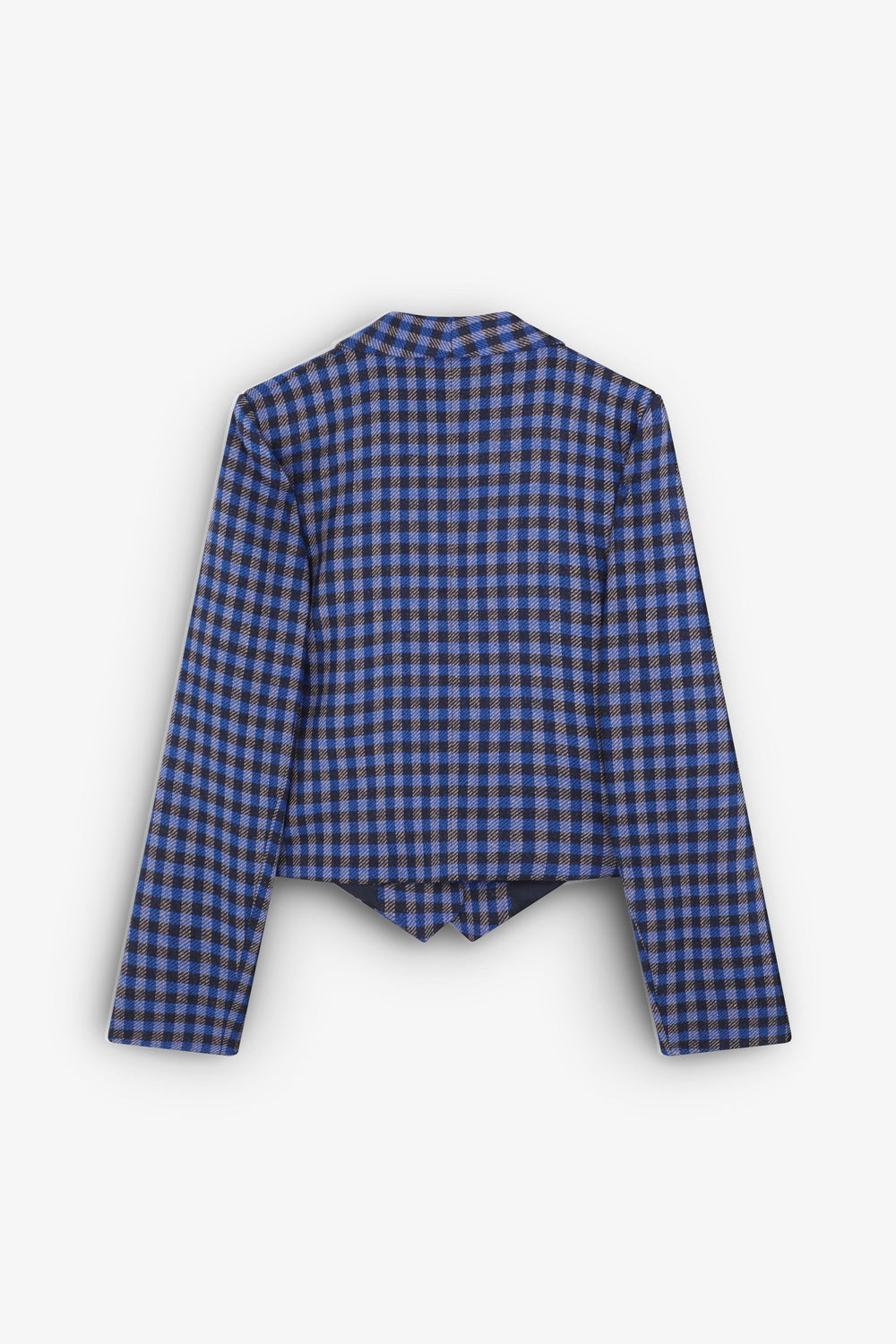 Blazer con chaleco integrado de cuadros confeccionada en mezcla de lana. Regular fit ligeramente cropped, cuello con solapas y cierre con botones en el chaleco. Manga larga.