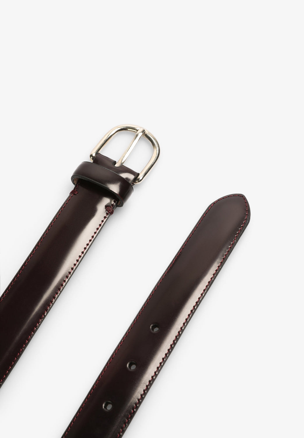 Cinturón confeccionado en 100% piel con acabado de brillo. Cierre con hebilla metálica.