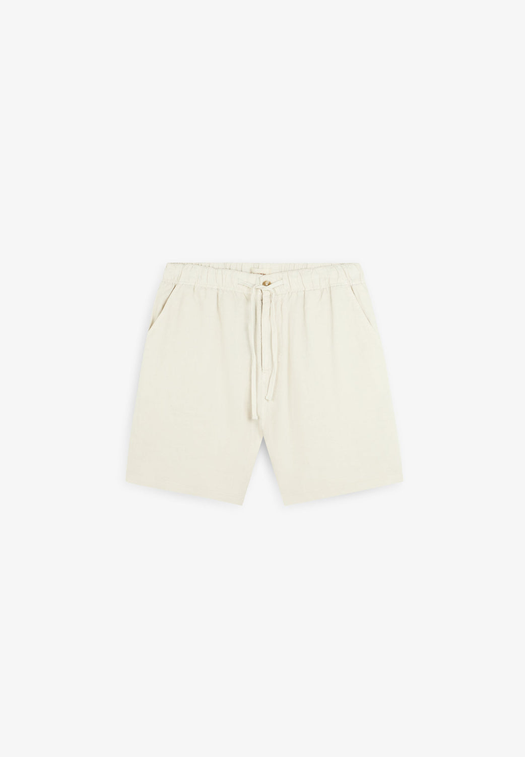 Bermudas confeccionadas en 100% Lino. Bolsillos en lateral. Bolsillos en espalda. Cinturilla ligeramente elástica ajustable con nudo. Cierre mediante cremallera y abotonadura en frontal.