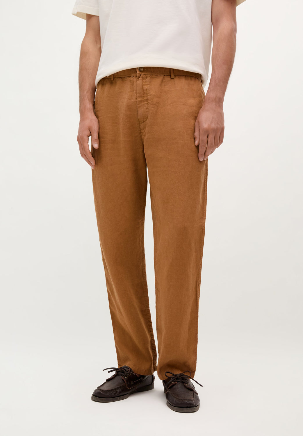 Pantalones confeccionados en 100% Lino. Corte Regular. Cerradura mediante cremallera y botón frontal. Bolsillos en parte lateral y traseros con cierre abotonado.