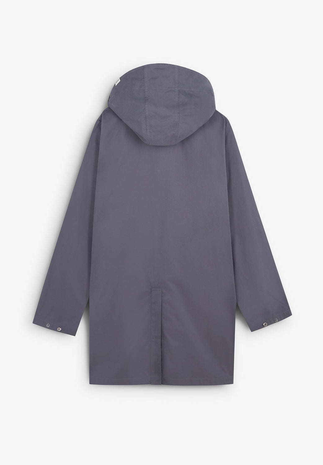 Parka tipo trench confeccionada en tejido técnico. Regular fit, cierre con snaps y cuello clásico con capucha desmontable. Manga larga y bolsillos laterales con tapeta.