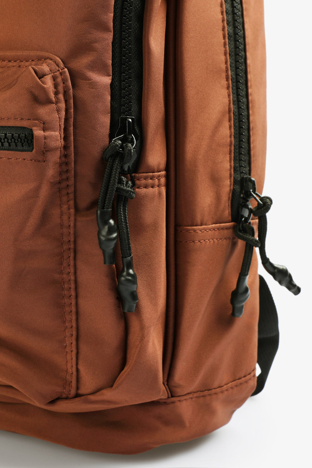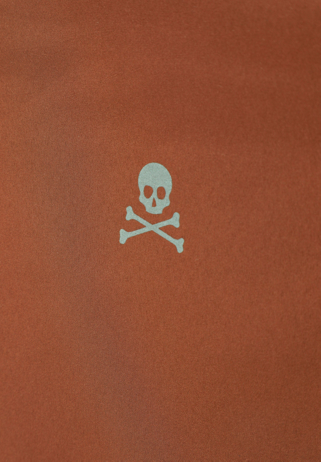 Mochila doble bolsillo con calavera frontal. Confeccionada en tejido técnico Cierre con cremallera. Asas traseras. Asa superior. Bolsillo delantero con cremallera