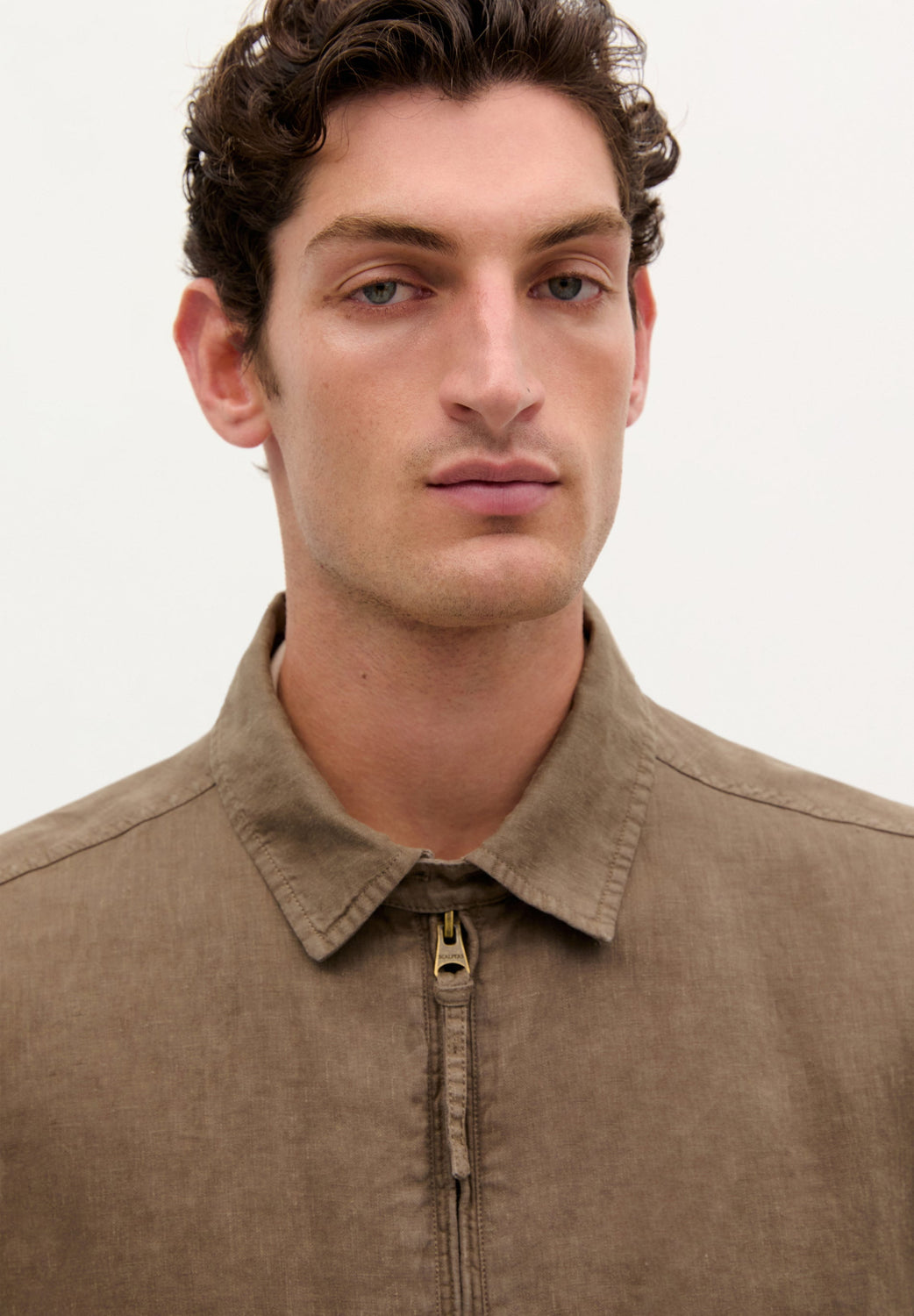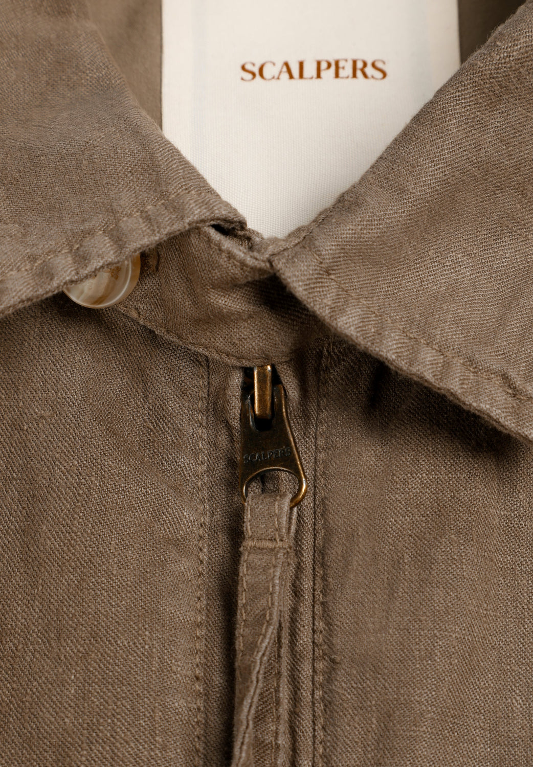 Cazadora confeccionada en 100% Lino. Cuello camisero. Manga larga. Puños ajustables con doble botón. Cierre mediante cremallera de doble carro. Bolsillos en parte delantera. Regular fit.