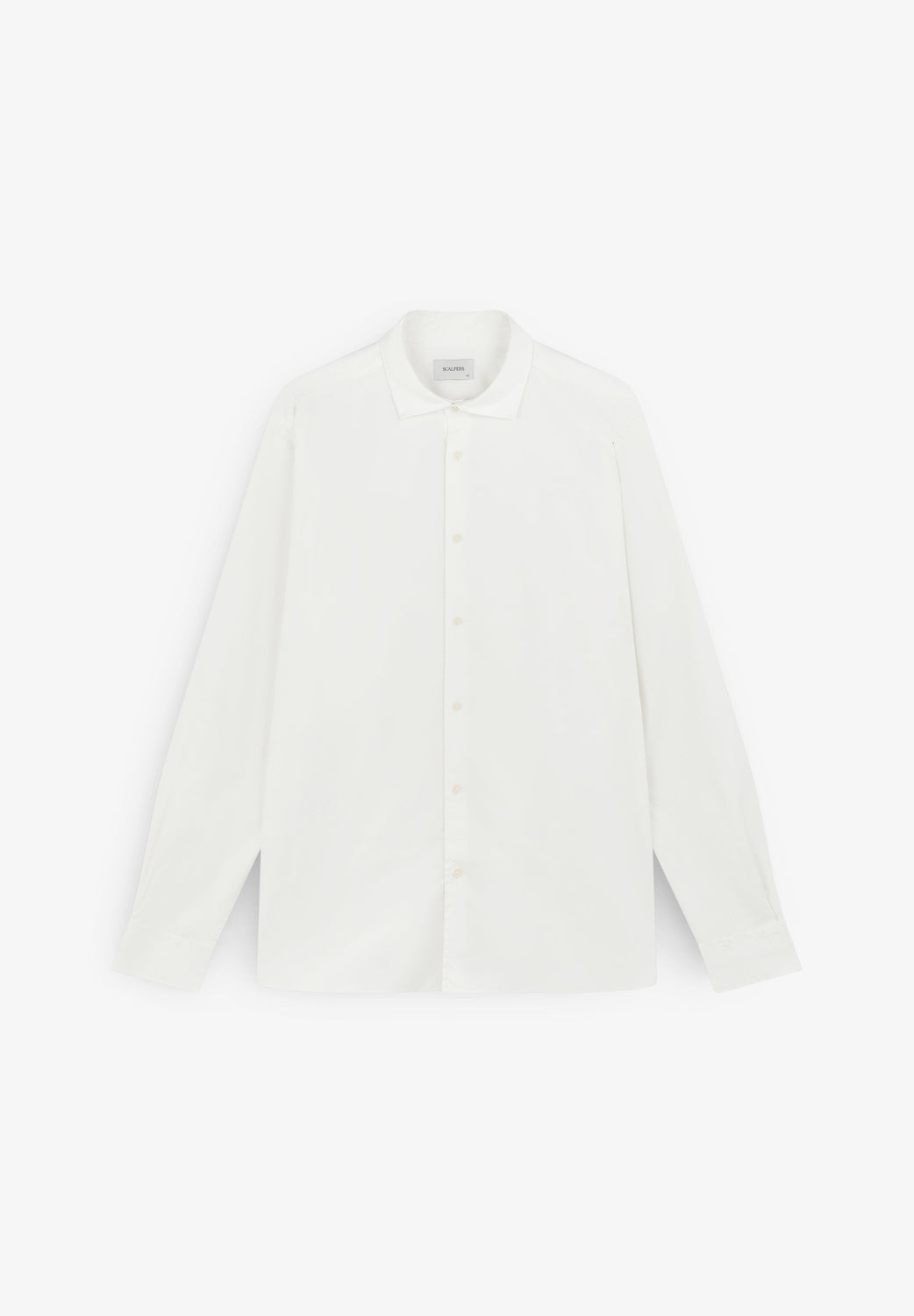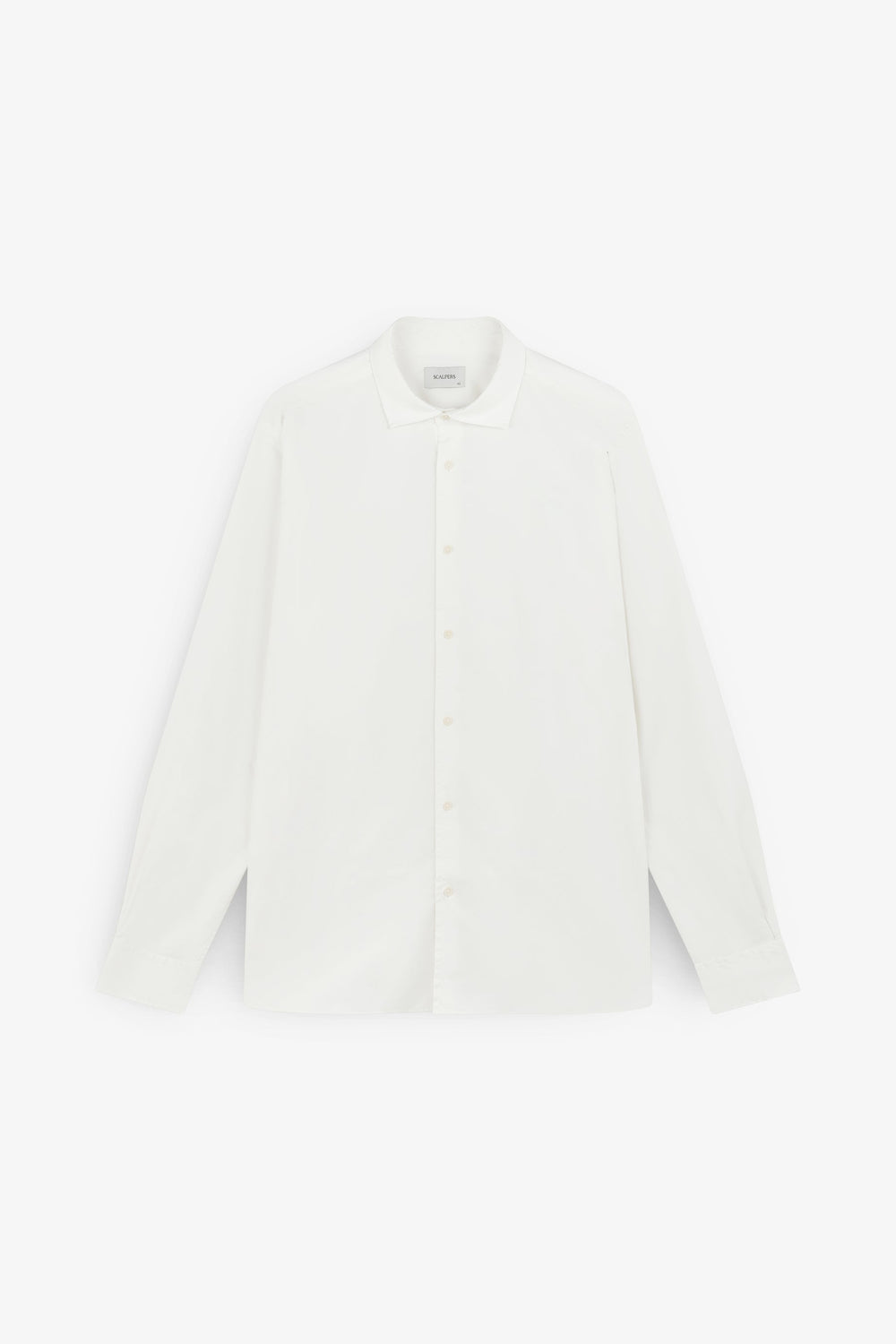 Camisa confeccionada en 100% algodón. Regular fit, cuello cutaway y cierre con botones. Manga larga terminada en puño con botón y calavera bordada a tono.