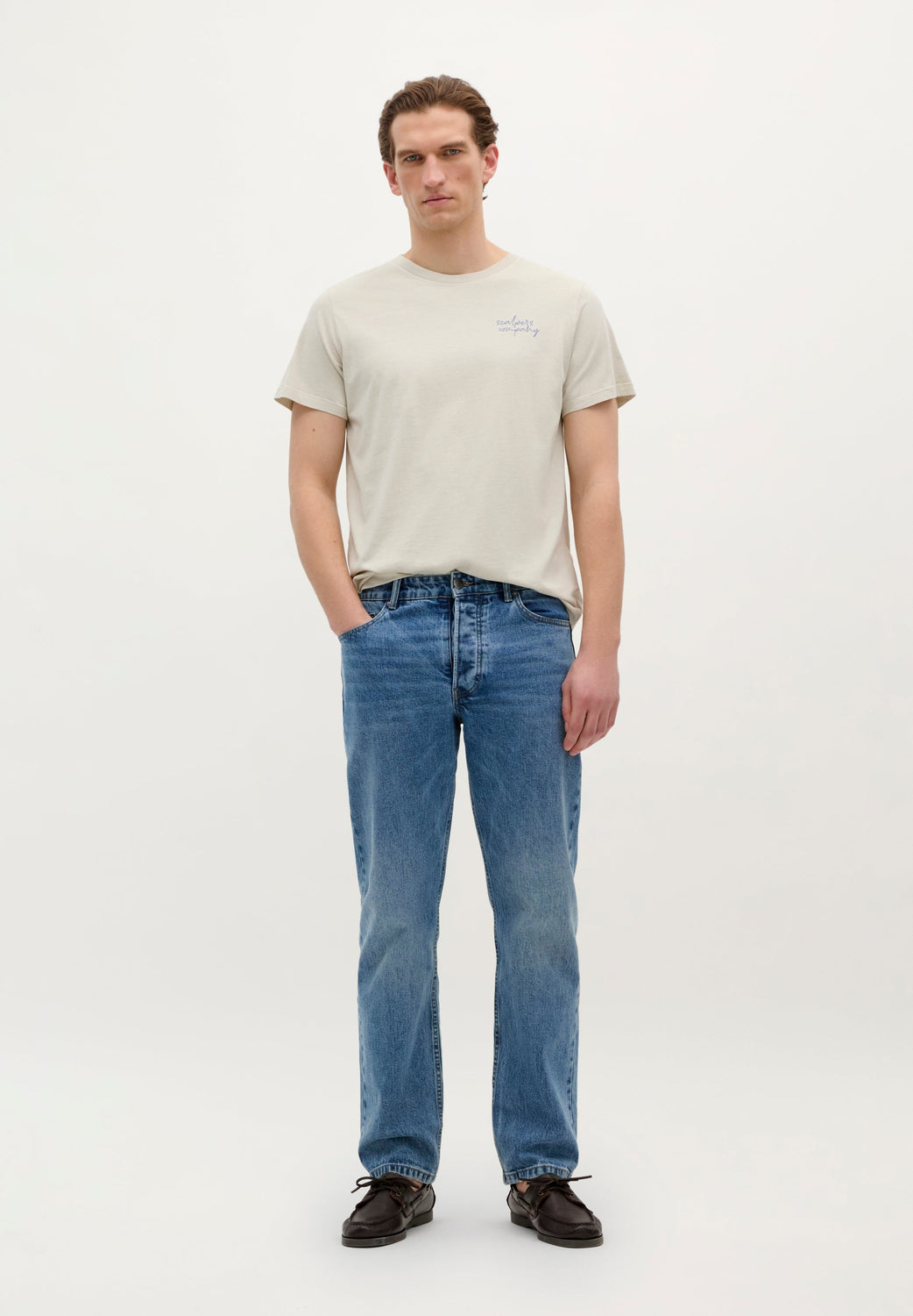 Camiseta confeccionada en algodón 100% BCI. Regular fit, cuello redondo, manga corta con print trasero y logo frontal en pecho.