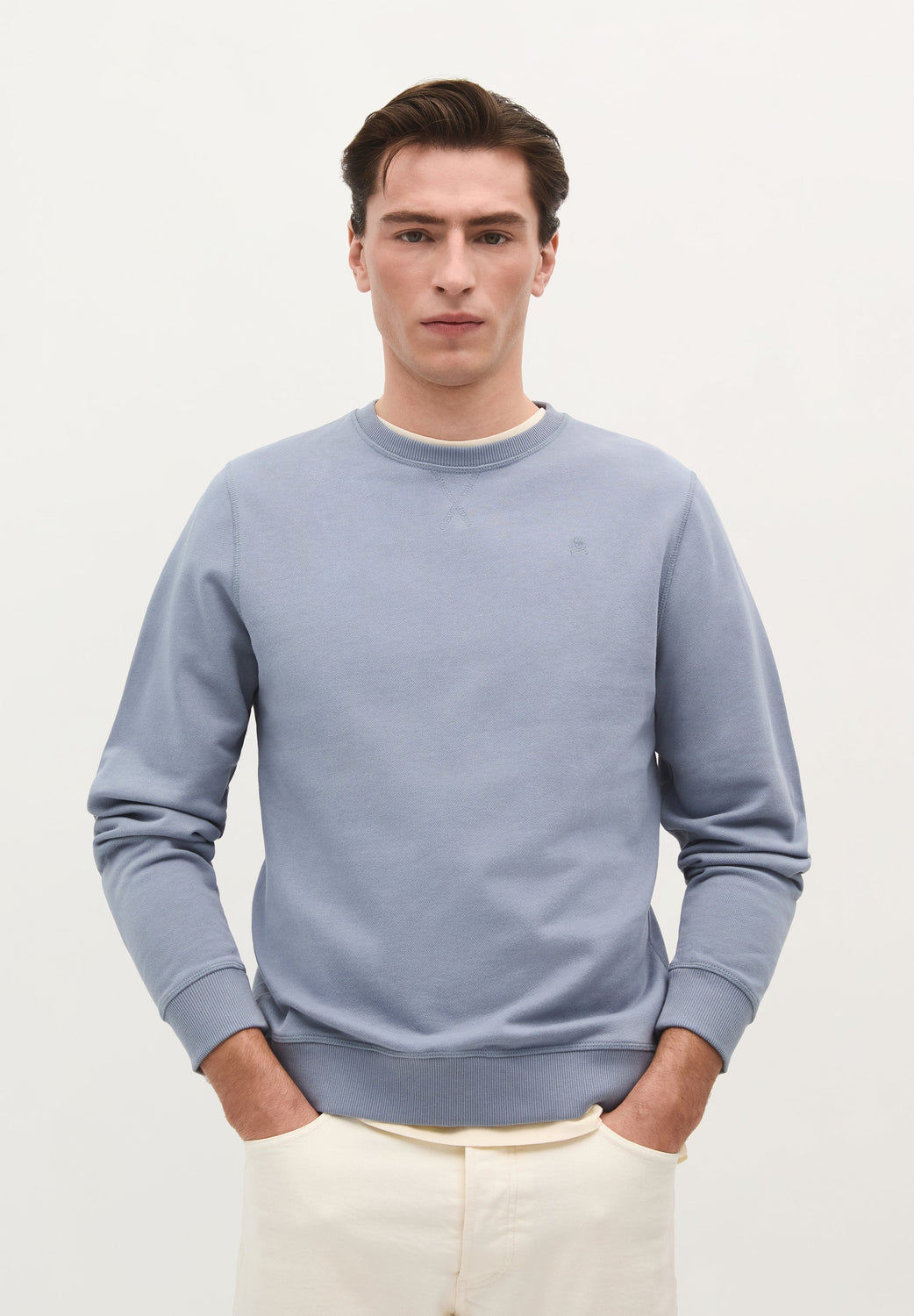 Sudadera básica confeccionada en 100% algodón BCI. Regular fit, cuello redondo y manga larga. Calavera bordada a tono.