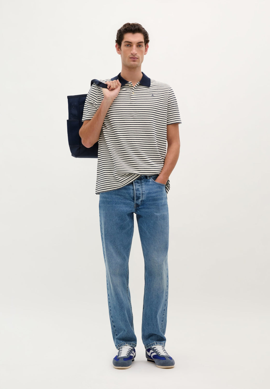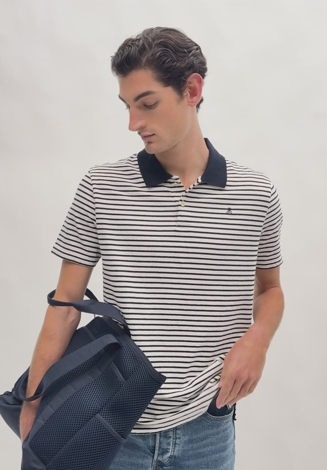 Polo de rayas. Regular fit. Cuello a contraste. Manga corta. Cierre mediante botones. Detalle de calavera bordada a contraste en pecho.