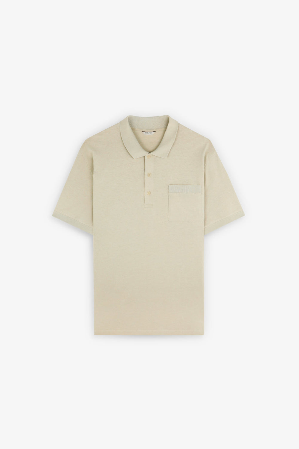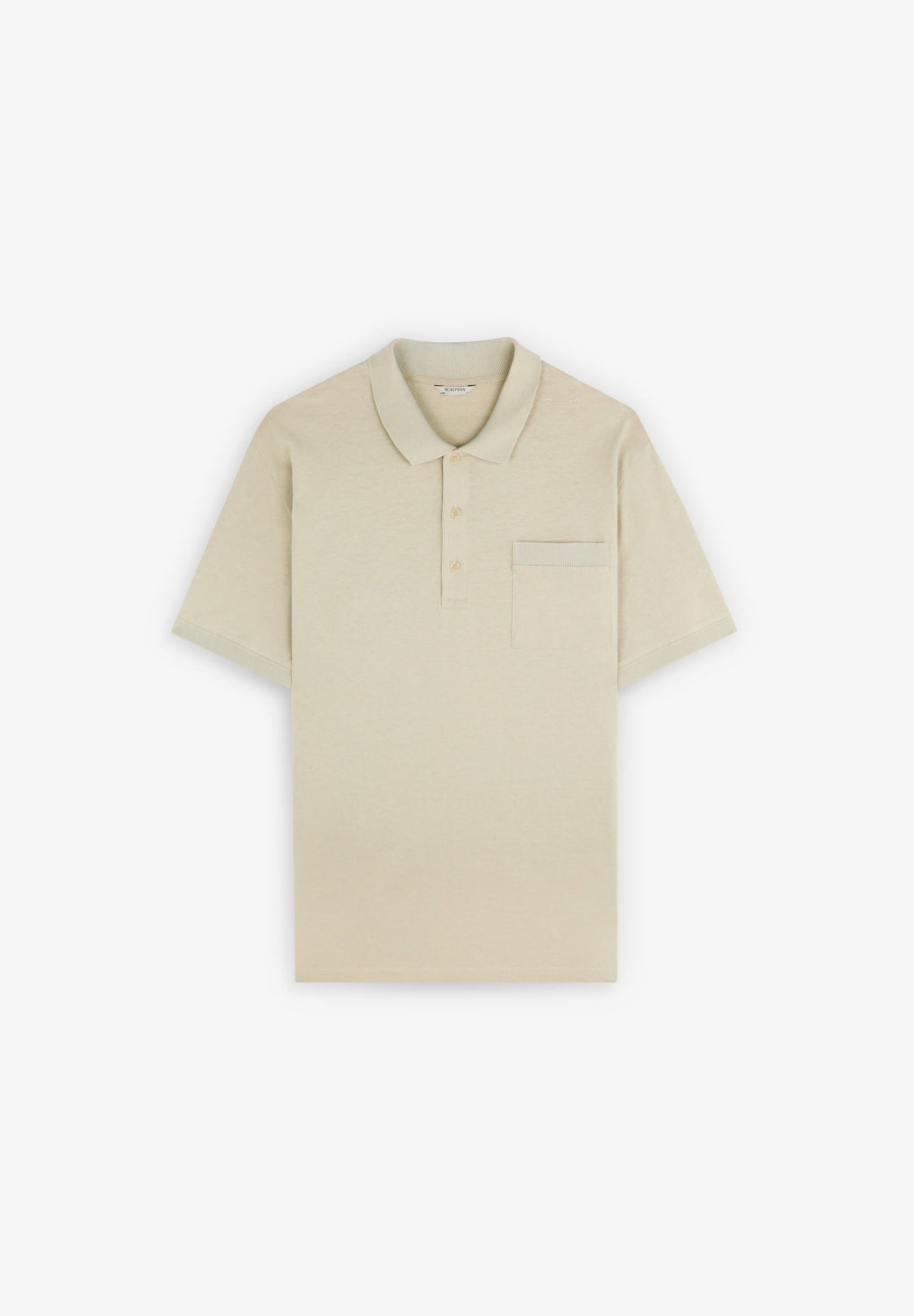Polo confeccionado en mezcla de algodón y lino. Manga corta. Regular fit. Cuello con cierre de 3 botones. Detalle con bolsillo de parche de punto en el pecho.