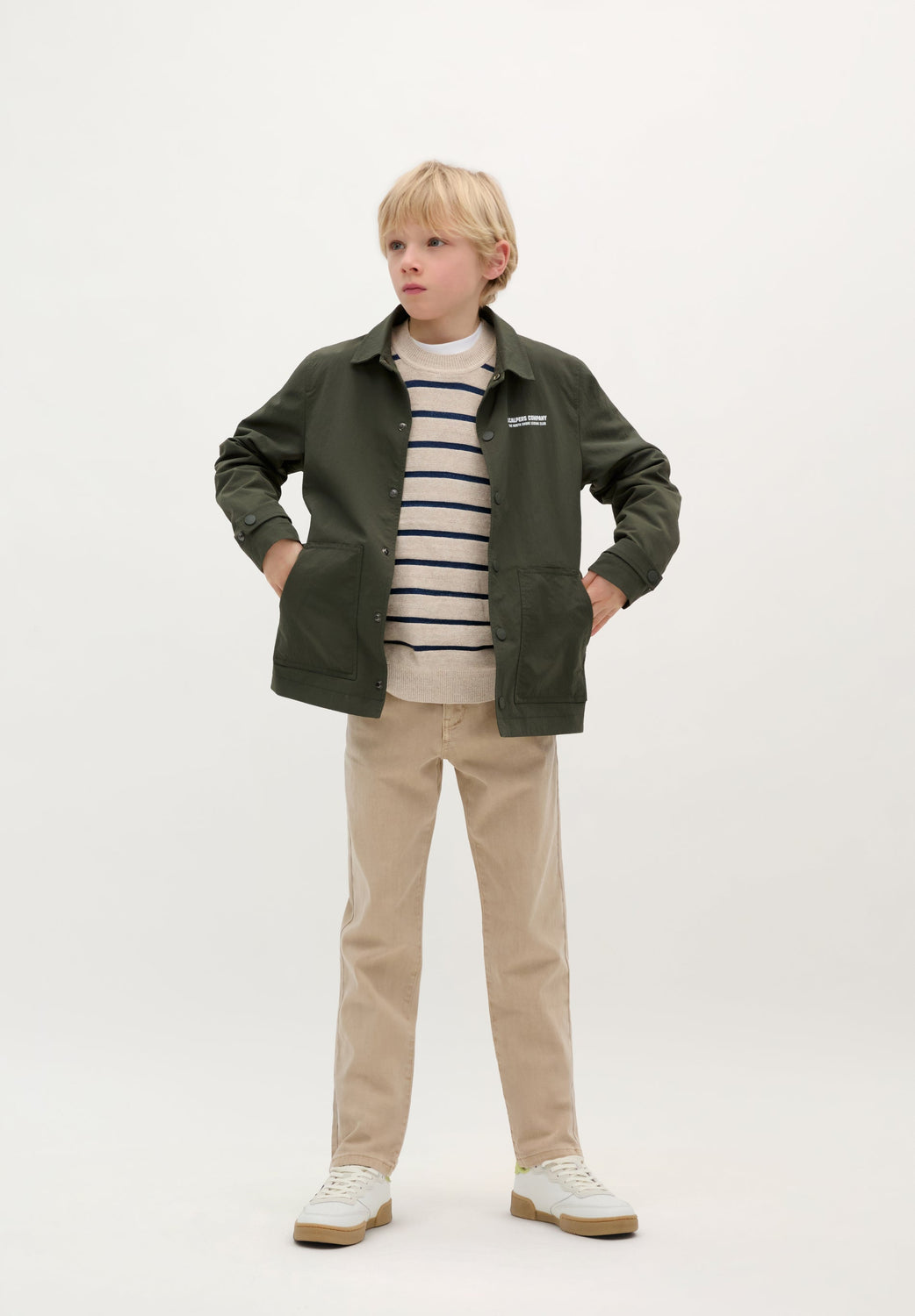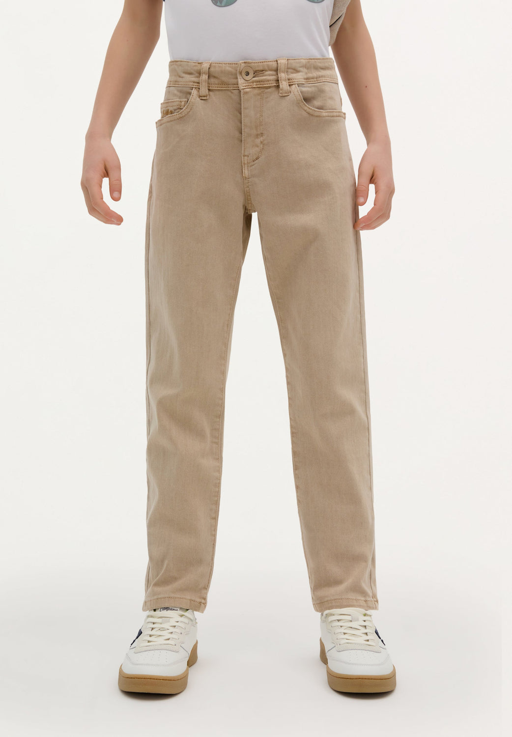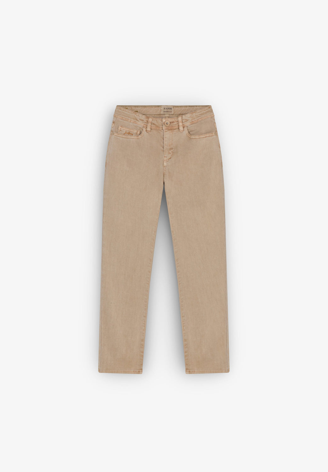 Pantalón cinco bolsillos. confeccionado en tejido ligeramente elástico. Cierre con botón y cremallera. Corte Regular Fit.