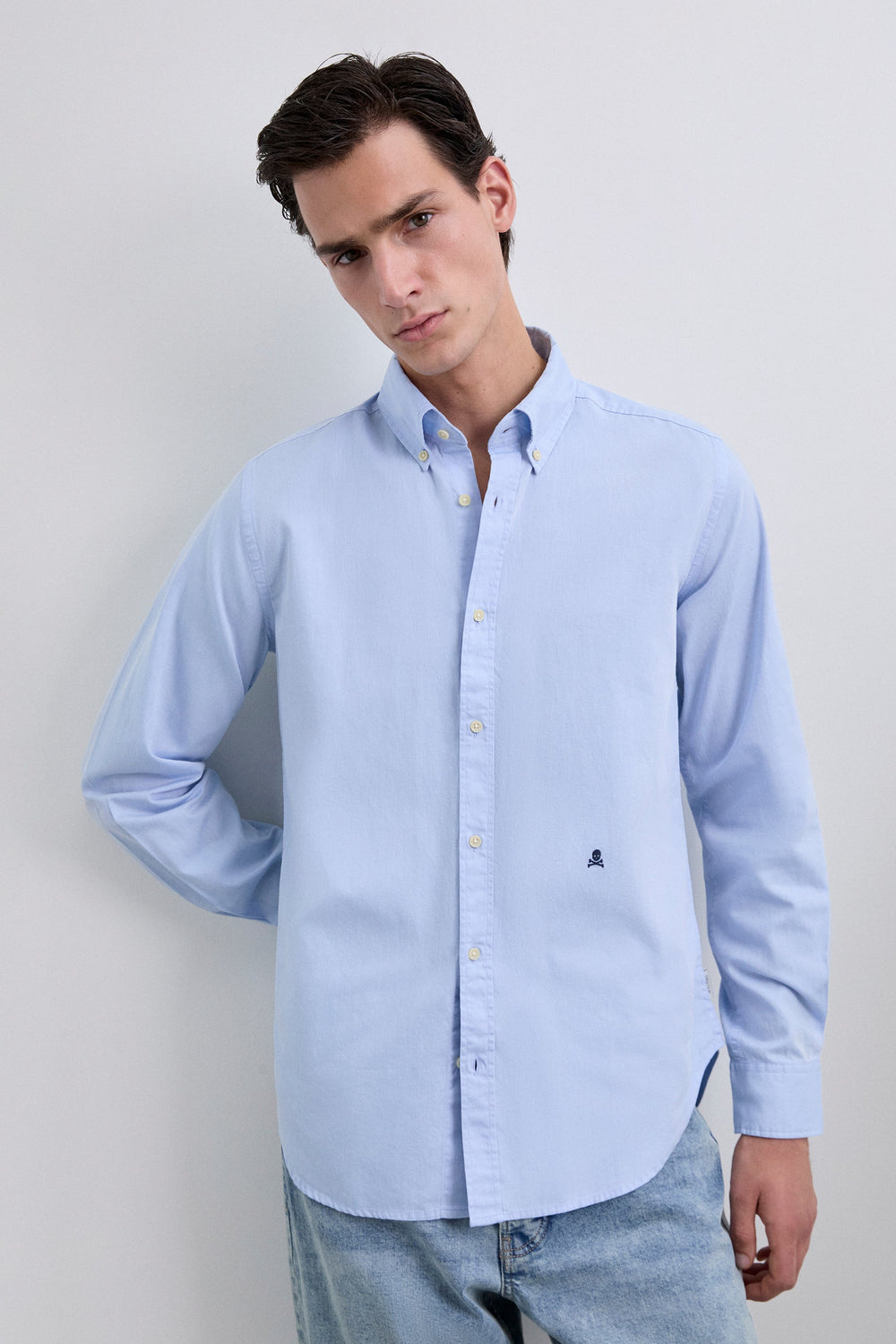 Camisa confeccionada en 100% algodón BCI. Cuello con abotonadura. Manga larga ajustable. Cierre mediante botonadura frontal. Calavera bordada a contraste en la parte inferior izquierda.
