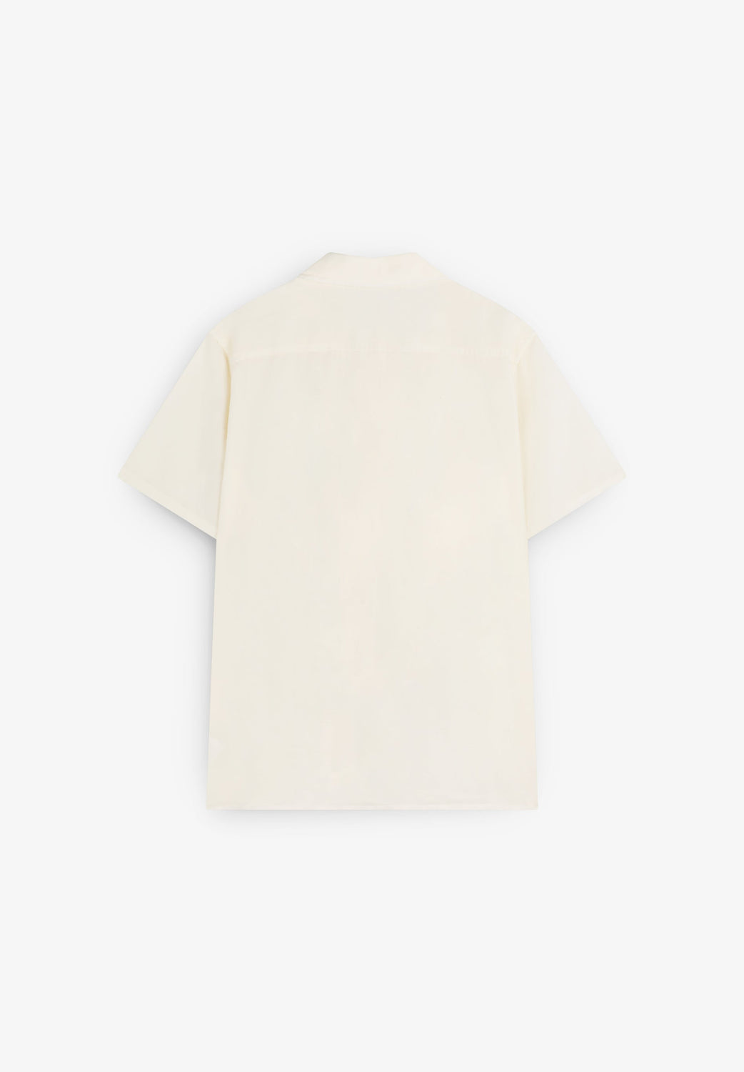 Camisa confeccionada en tejido con lino. Cuello con solapa. Manga corta. Cierre mediante abotonadura frontal. Logo bordado a tono.