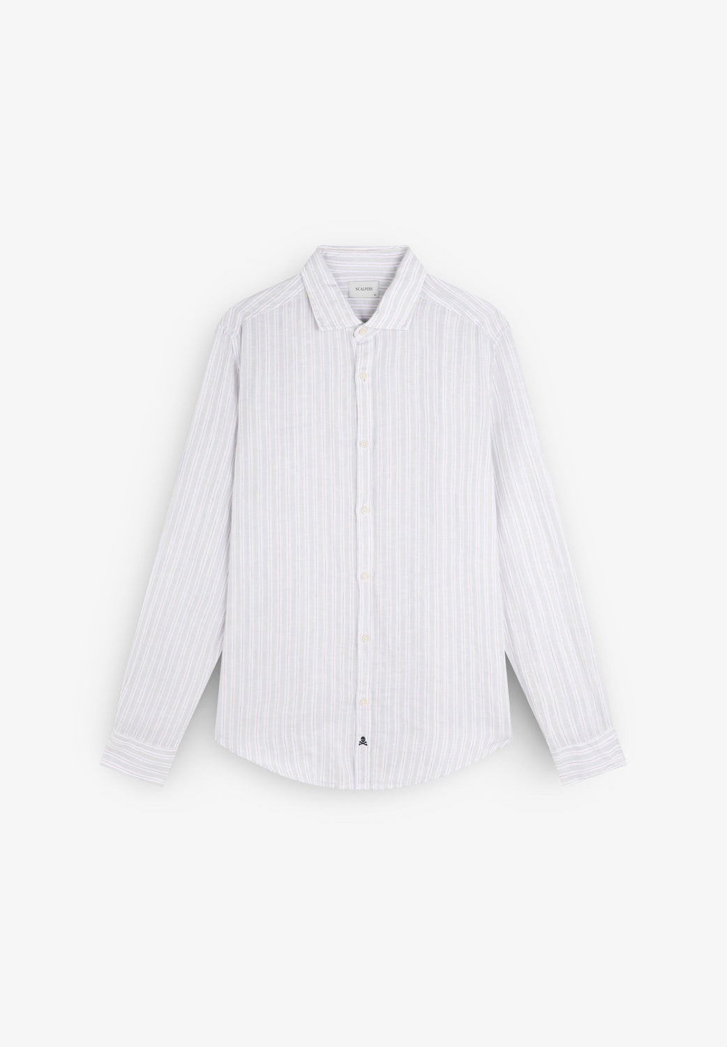 Camisa confeccionada en 100% Lino. Slim fit. Manga larga con puño abotonado. Cuello camisero. Cierre mediante botonadura frontal. Estampado de rayas. Logo bordado en frontal.