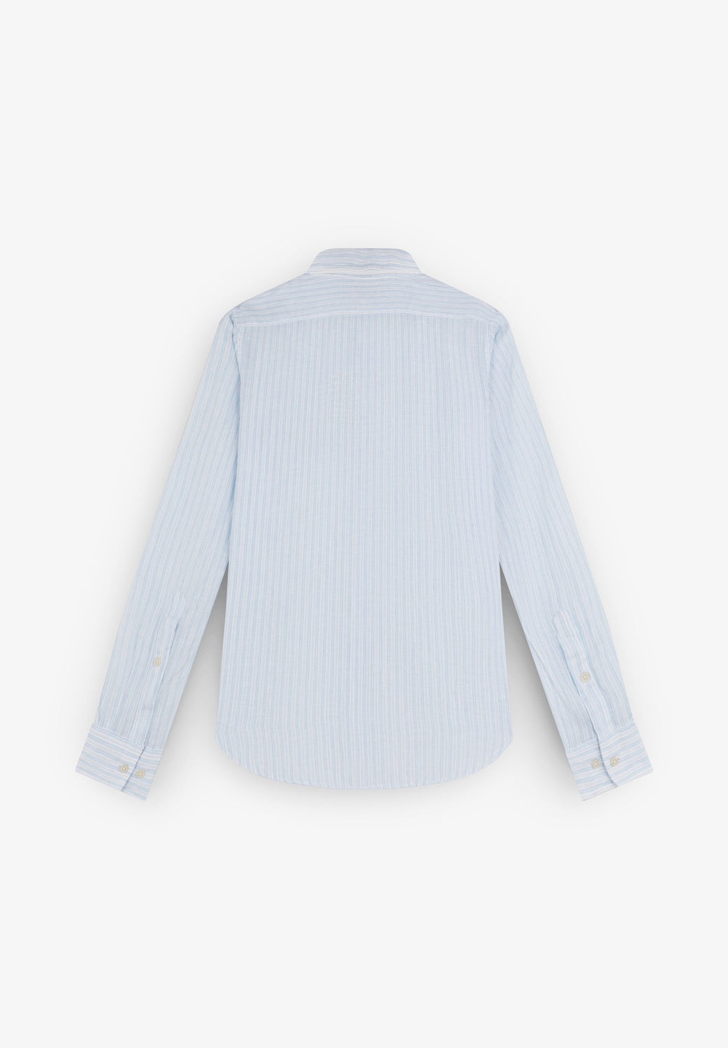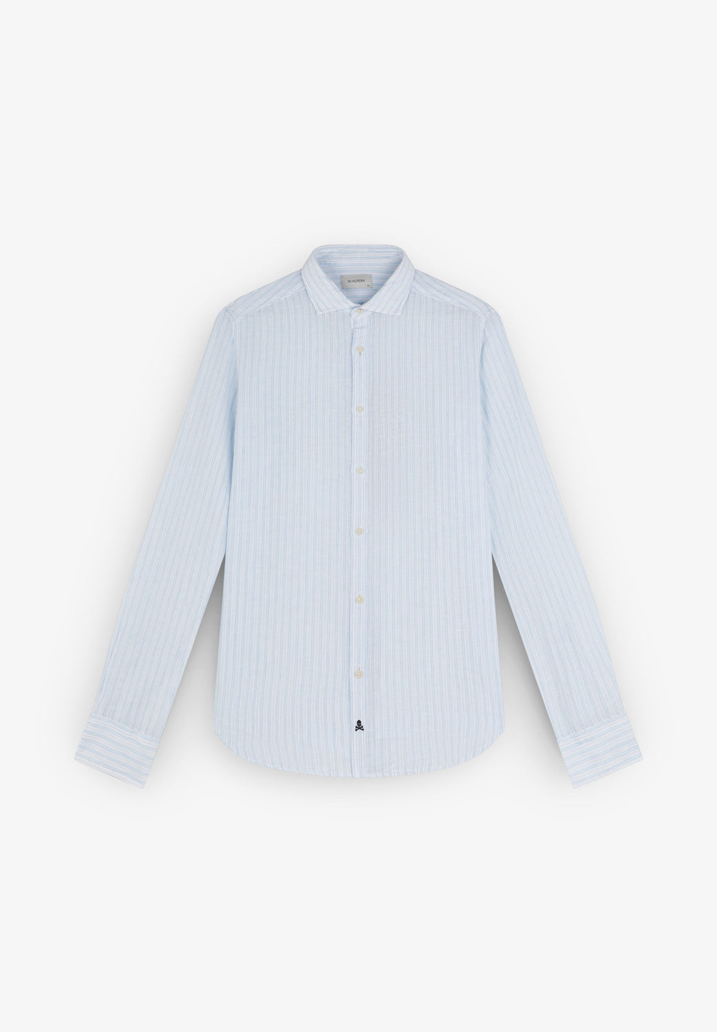 Camisa confeccionada en 100% Lino. Slim fit. Manga larga con puño abotonado. Cuello camisero. Cierre mediante botonadura frontal. Estampado de rayas. Logo bordado en frontal.