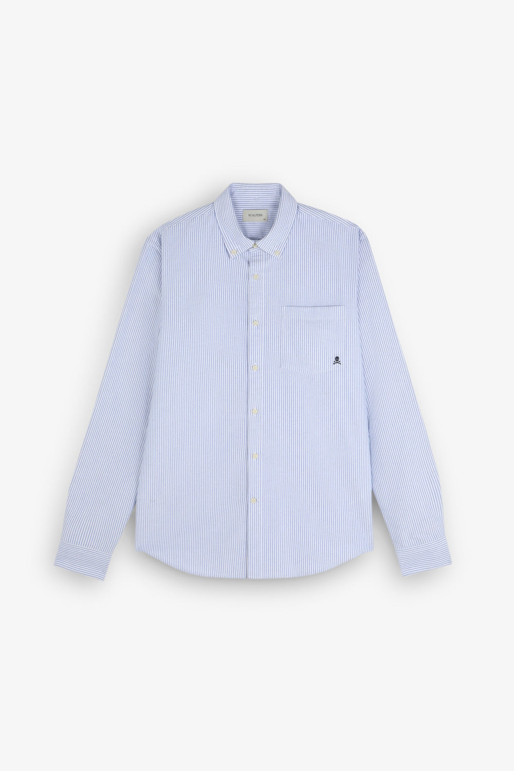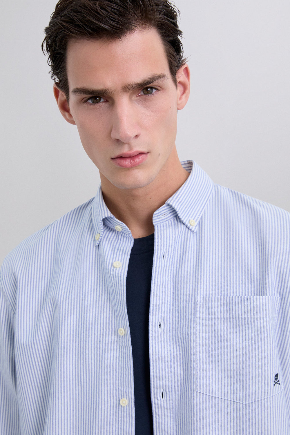 Camisa con calavera bordada a tono en pecho. Confeccionada en 100% Algodón BCI. Corte Regular fit. Cuello con botones. Manga larga terminada en puño con botones. Cierre frontal con botones. Bolsillo tipo parche en pecho.