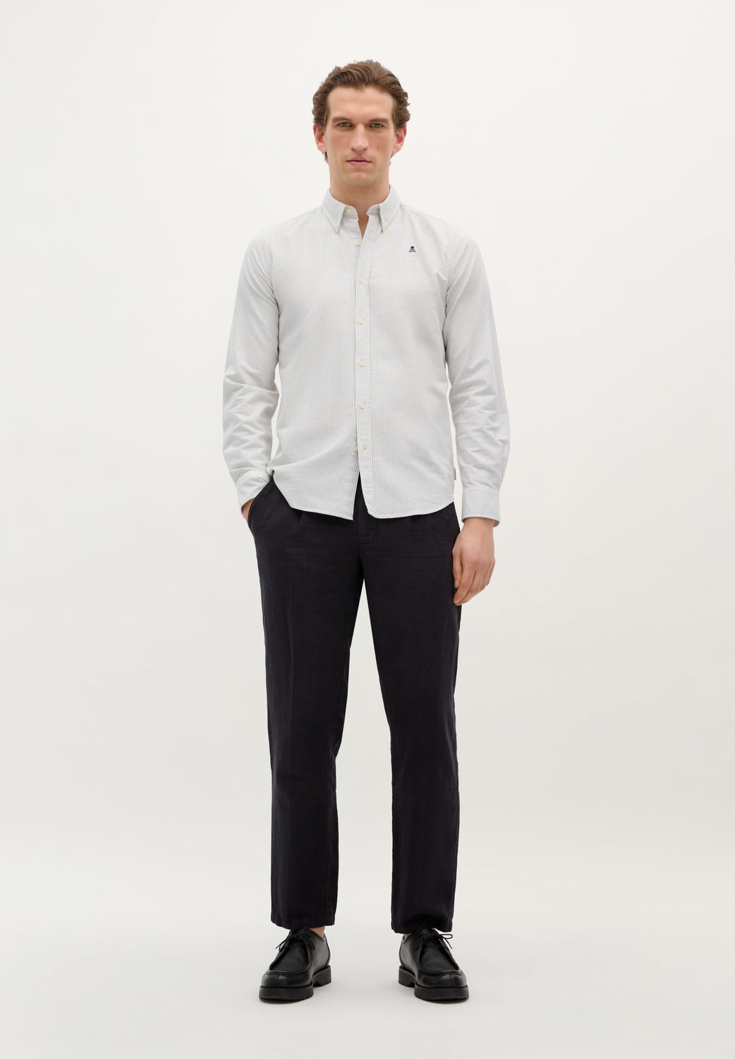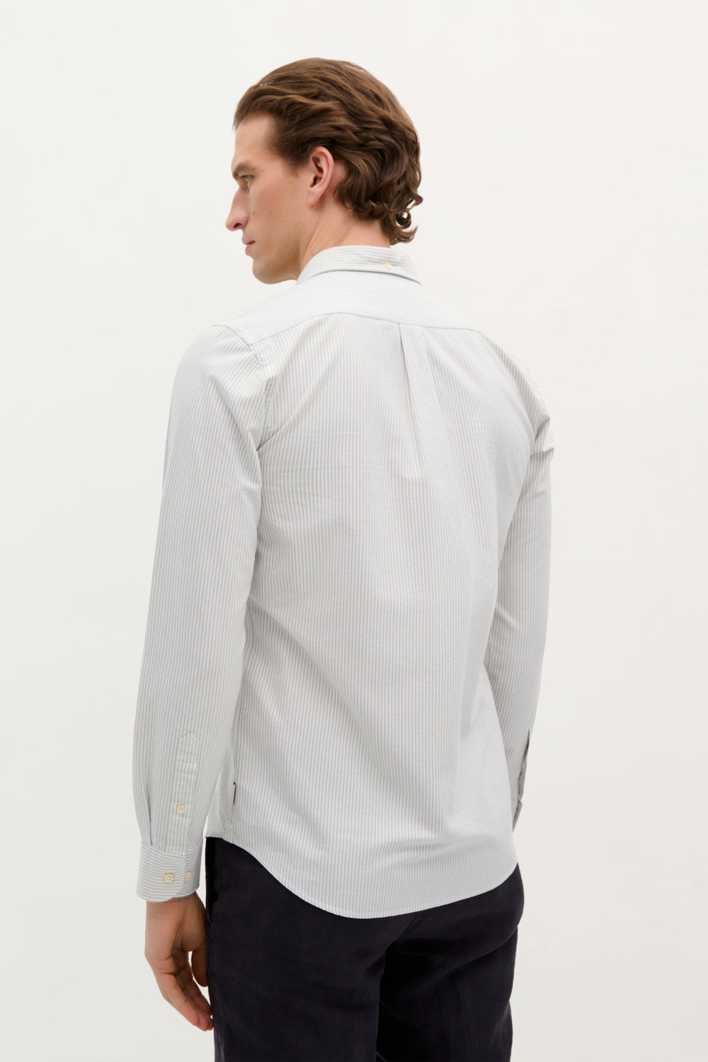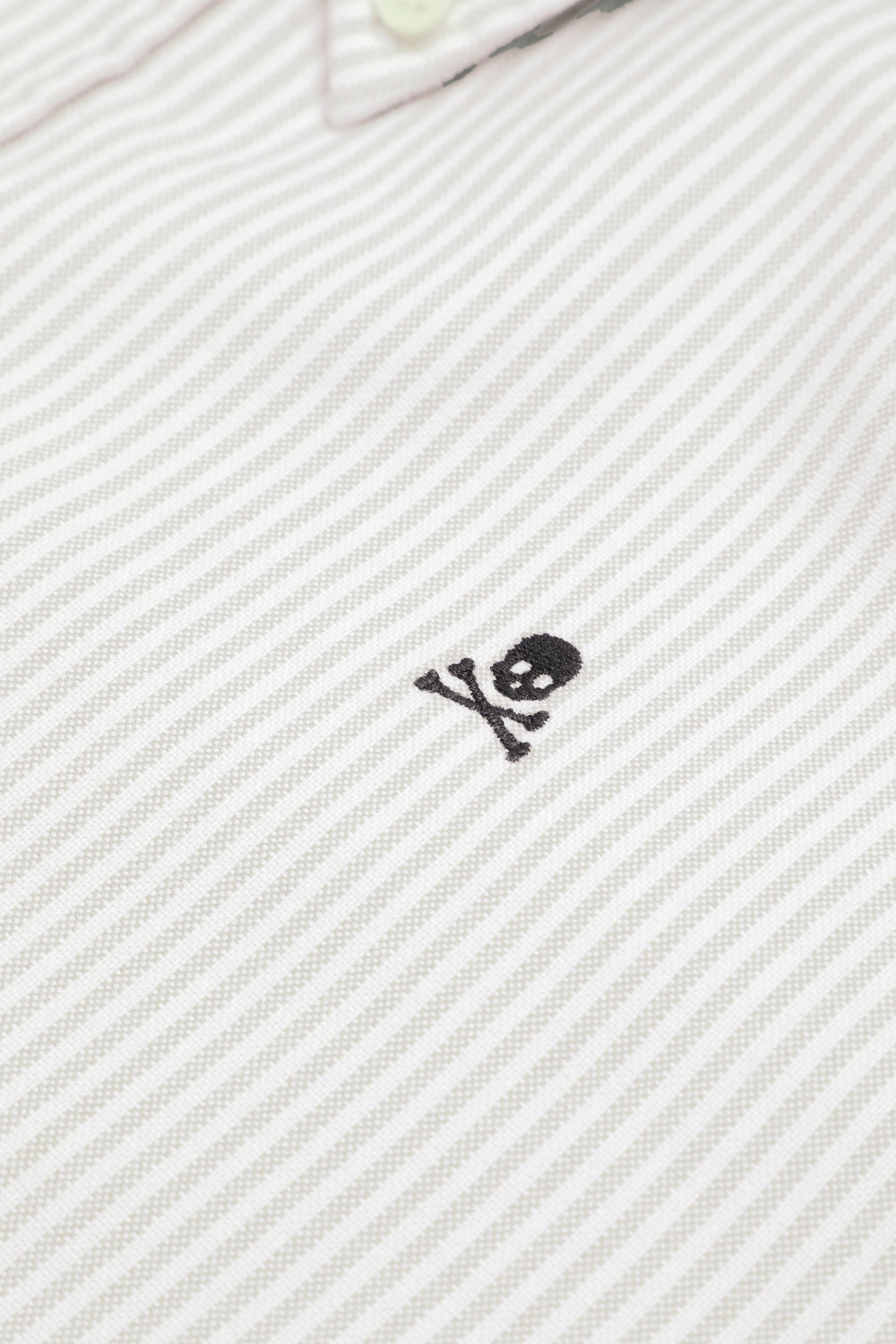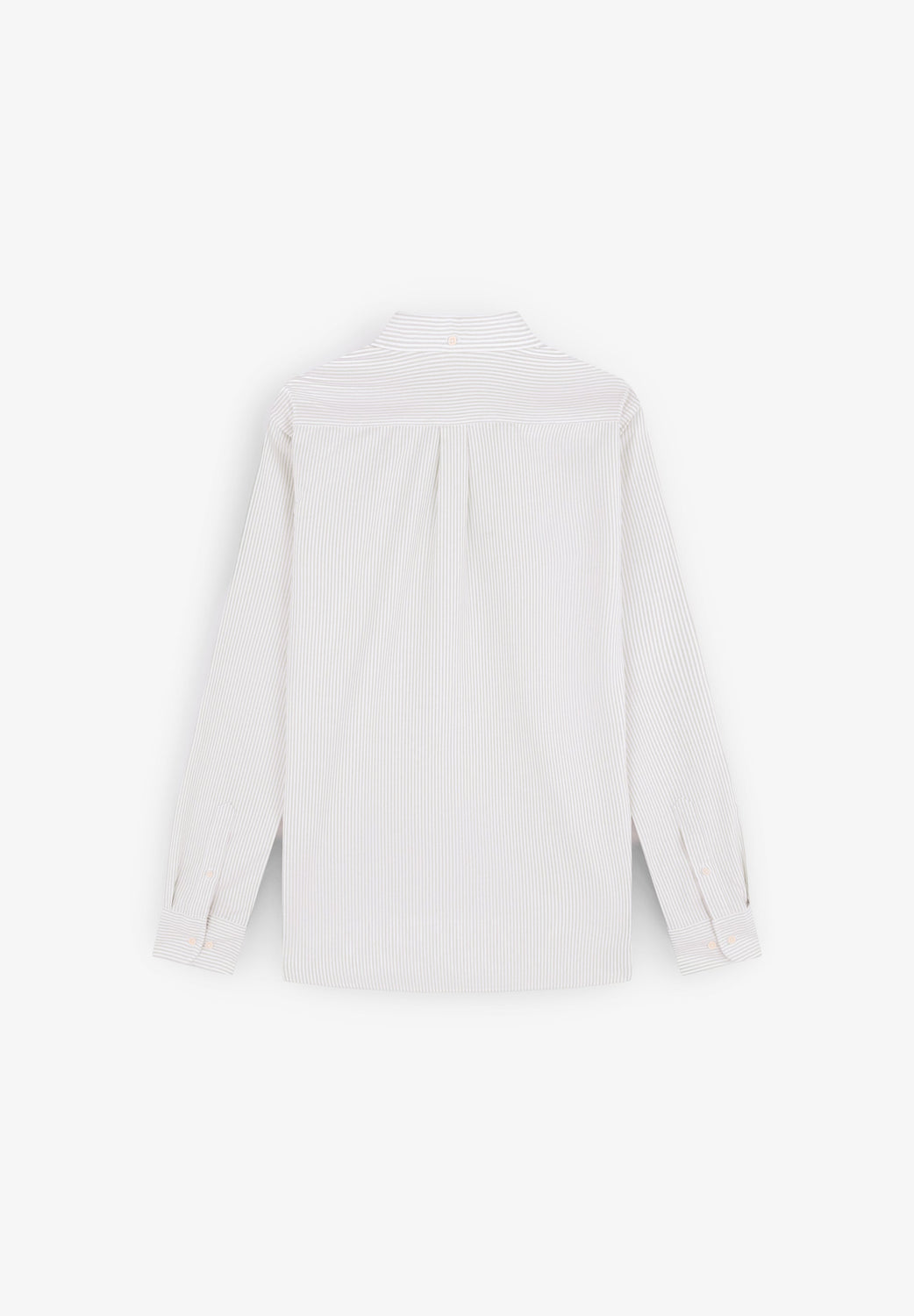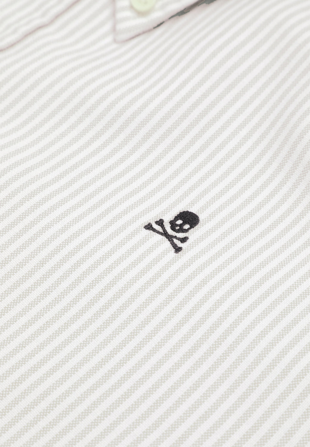 Camisa confeccionada en 100% algodón BCI. Regular fit, cuello con botones y cierre con botones. Manga larga terminada en puño con botones y calavera bordada a contraste.
